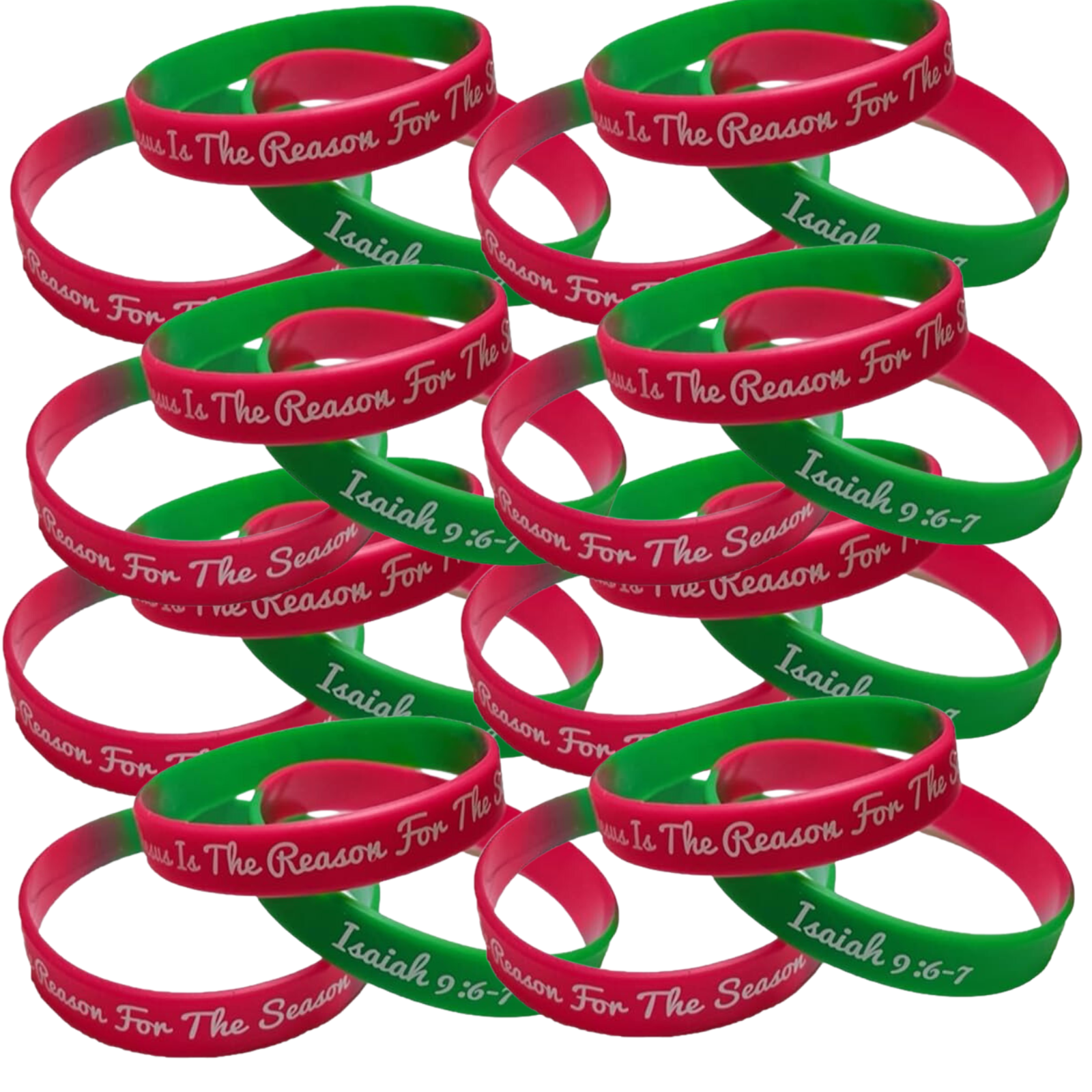 Embrace the true spirit of Christmas with our exclusive wristbands. Each one proudly bears the message 'Jesus is the reason for the season' in front and 'Isaiah 9:6-7' on the back.