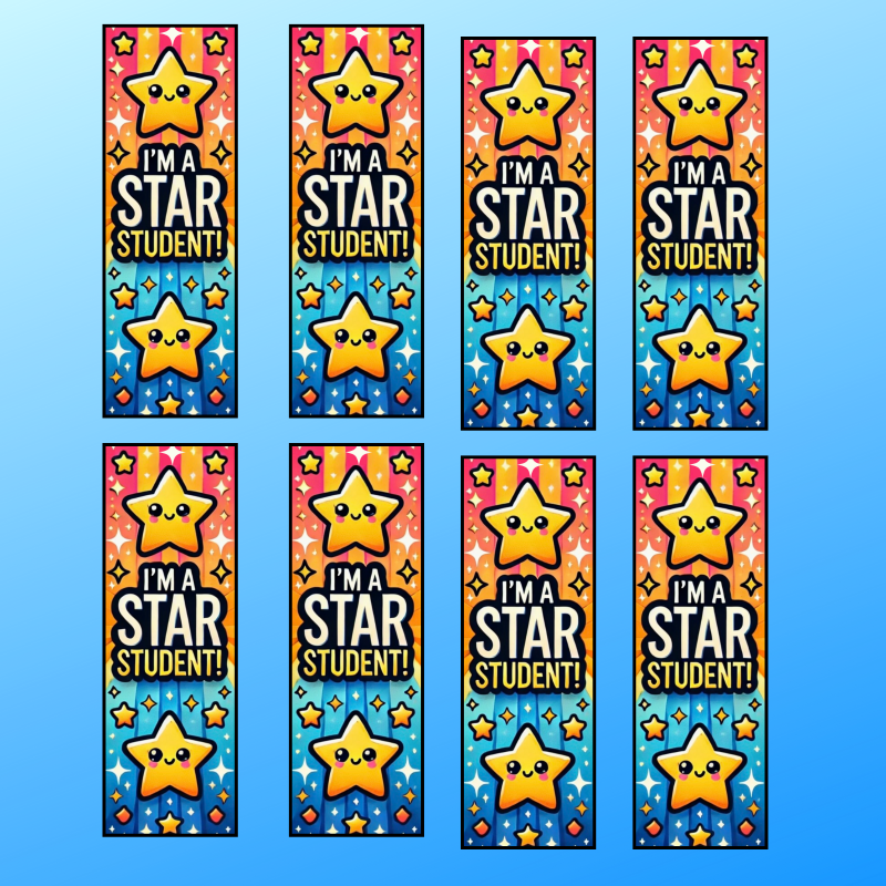 Celebrate your students' achievements with these vibrant 'I'm A Star Student' Bookmarks! Perfect for rewarding excellence and encouraging a love of reading, these colorful bookmarks are a fun and practical way to recognize hard work in the classroom.