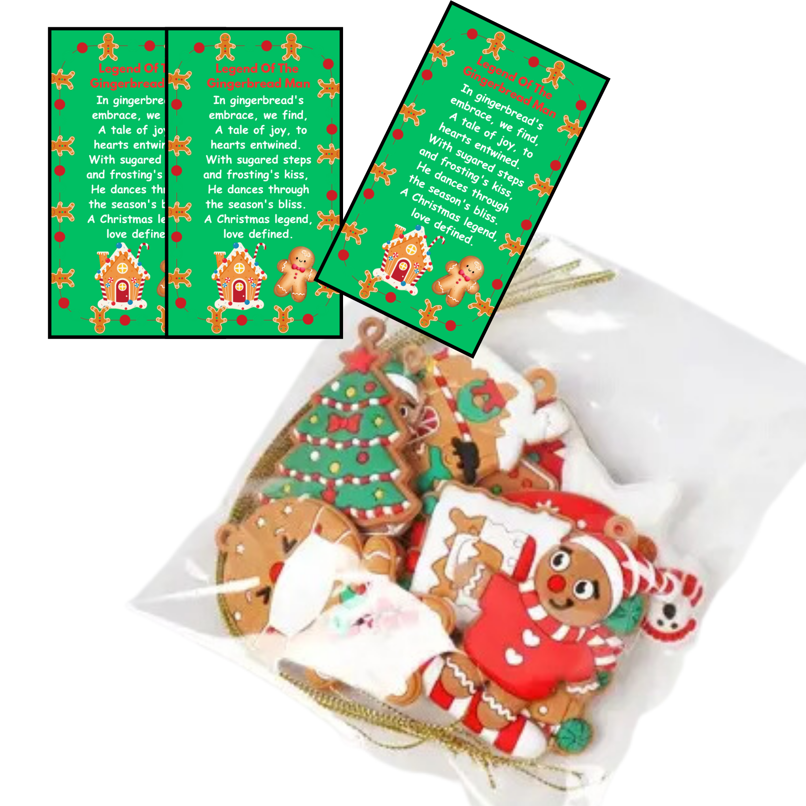 This set of 24 delightful Gingerbread Man Christmas Ornaments with Cards makes a great gift. Transform your tree into a festive wonderland with this collection of 24 Gingerbread Man Christmas Ornaments, each accompanied by its very own Legend of The Gingerbread Man Holiday Card. Crafted from durable, high-quality plastic, these 3-inch tall ornaments are designed to last, ensuring they become cherished additions to your holiday traditions for years to come. Each ornament is a unique masterpiece, intricately detailed to mimic the look of real gingerbread cookies. They come complete with strings for easy hanging, making decorating a breeze. Their petite 3-inch size makes them a perfect fit for small to medium-sized Christmas trees. These adorable gingerbread ornaments aren't limited to just tree decoration. Use them to adorn wreaths, garlands, or even as festive gift tags. Spread the holiday cheer by gifting them to friends, family, colleagues, teachers, carolers, and more. They also make delightful additions to treat bags for kids. This season, add a touch of tradition and sweetness to your festivities with our charming Gingerbread Man Ornaments. Order yours today and embark on a holiday season filled with warmth, joy, and the magic of the Gingerbread Man.