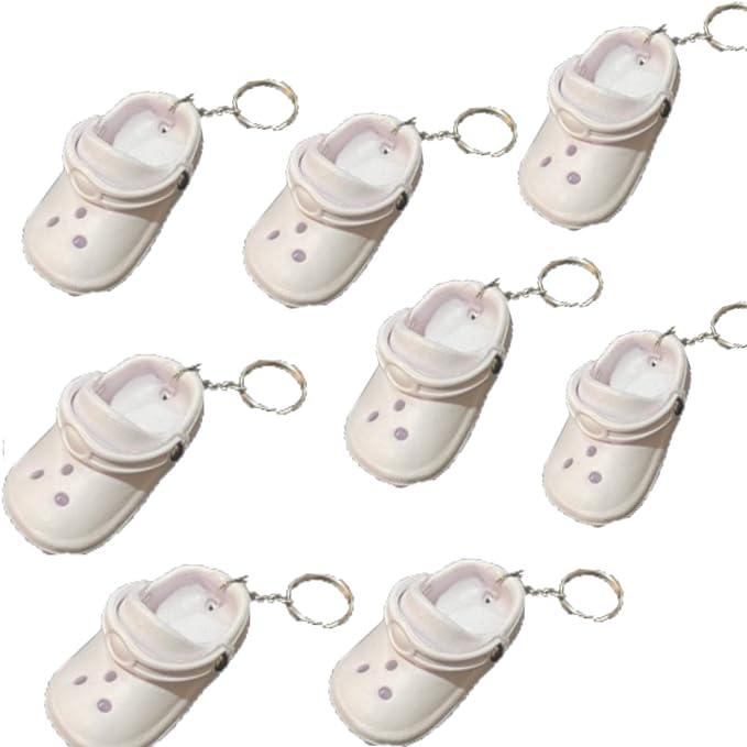 Introducing these adorable all-white mini rubber shoe keychains! Resembling charming clog-like shoes, they are perfect for party favors. Measuring at a compact 3', they come in a classic all-white shade. With each order, you'll receive a generous total of 48 keychains, making them ideal for kids' parties and crafting projects.