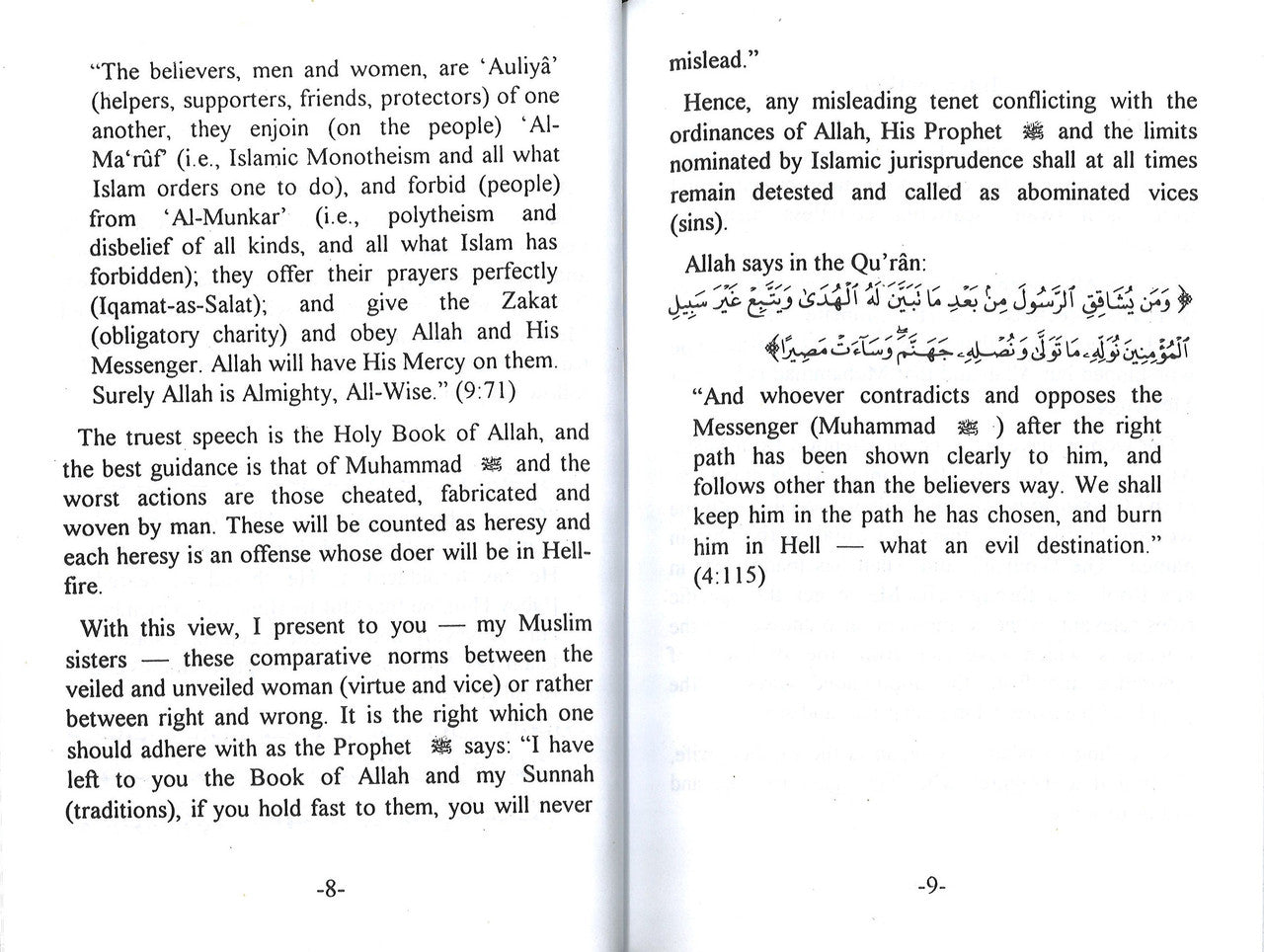 The author has proved with references from the Qur'an and Sunnah of veiling of women in Islam. Unveiling is against the traditions (Sunnah) and the teachings of the Qur'an.