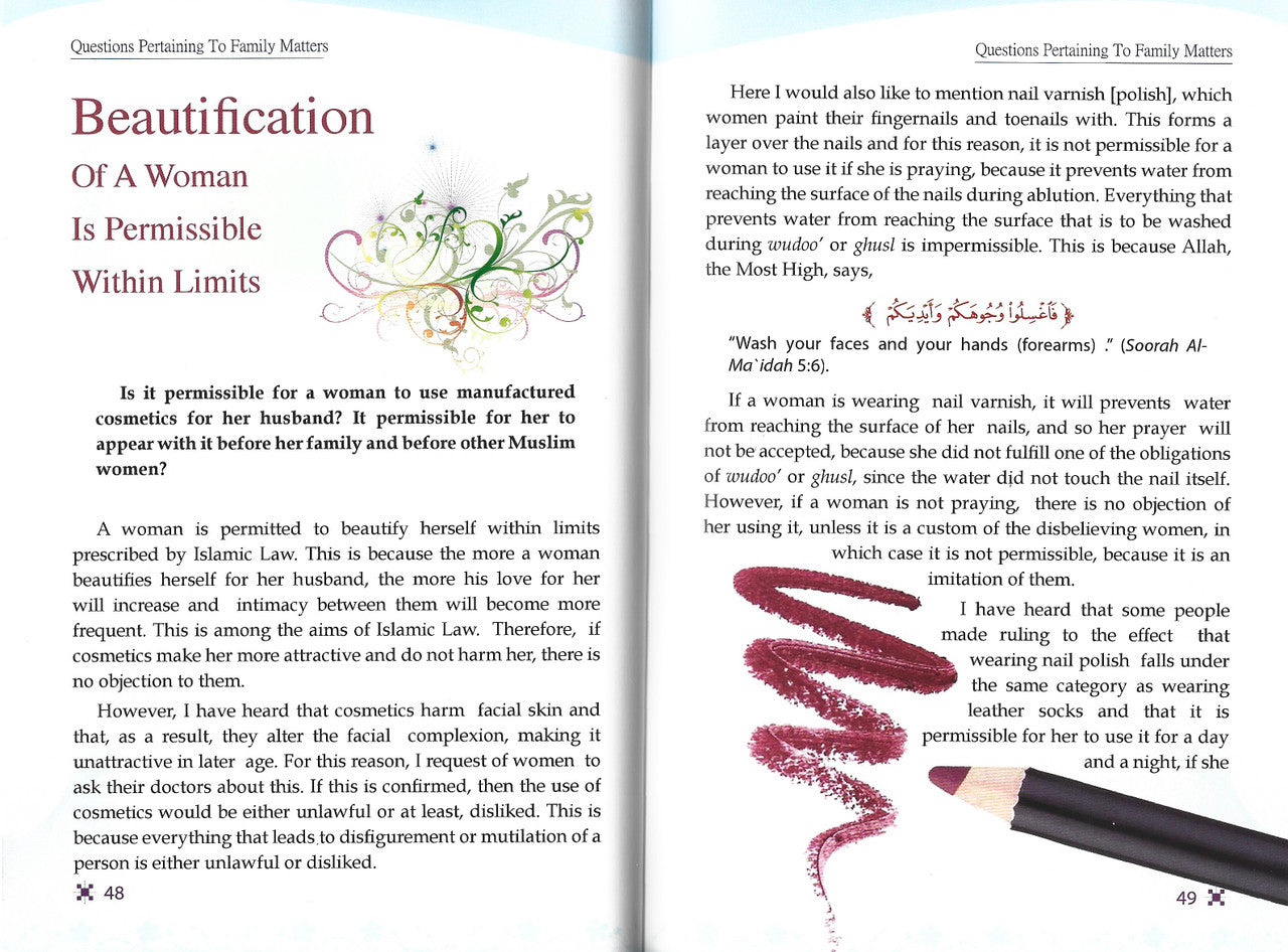 No one denies that the modesty which is commanded by Islamic Law and by convention includes the decency and decorousness demanded of a woman, and the kind of behavior that will ensure that she is kept far away from situations of temptation and suspicion. Furthermore, there is no doubt that the greatest act of modesty that she can perform is to wear the hijab, which covers her face. It is the best thing with which she can adorn herself, because it protects her and keeps her far removed from temptation.