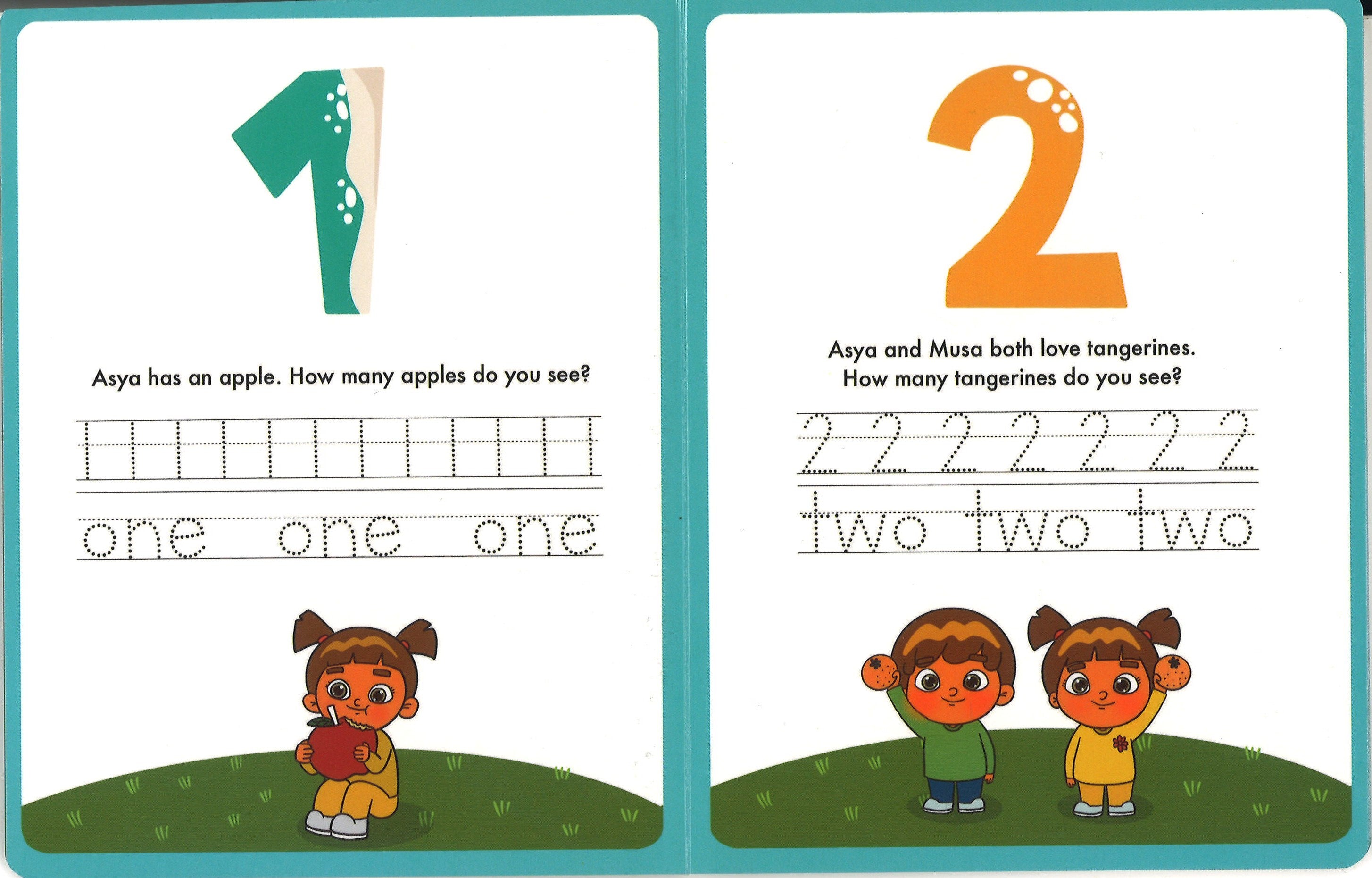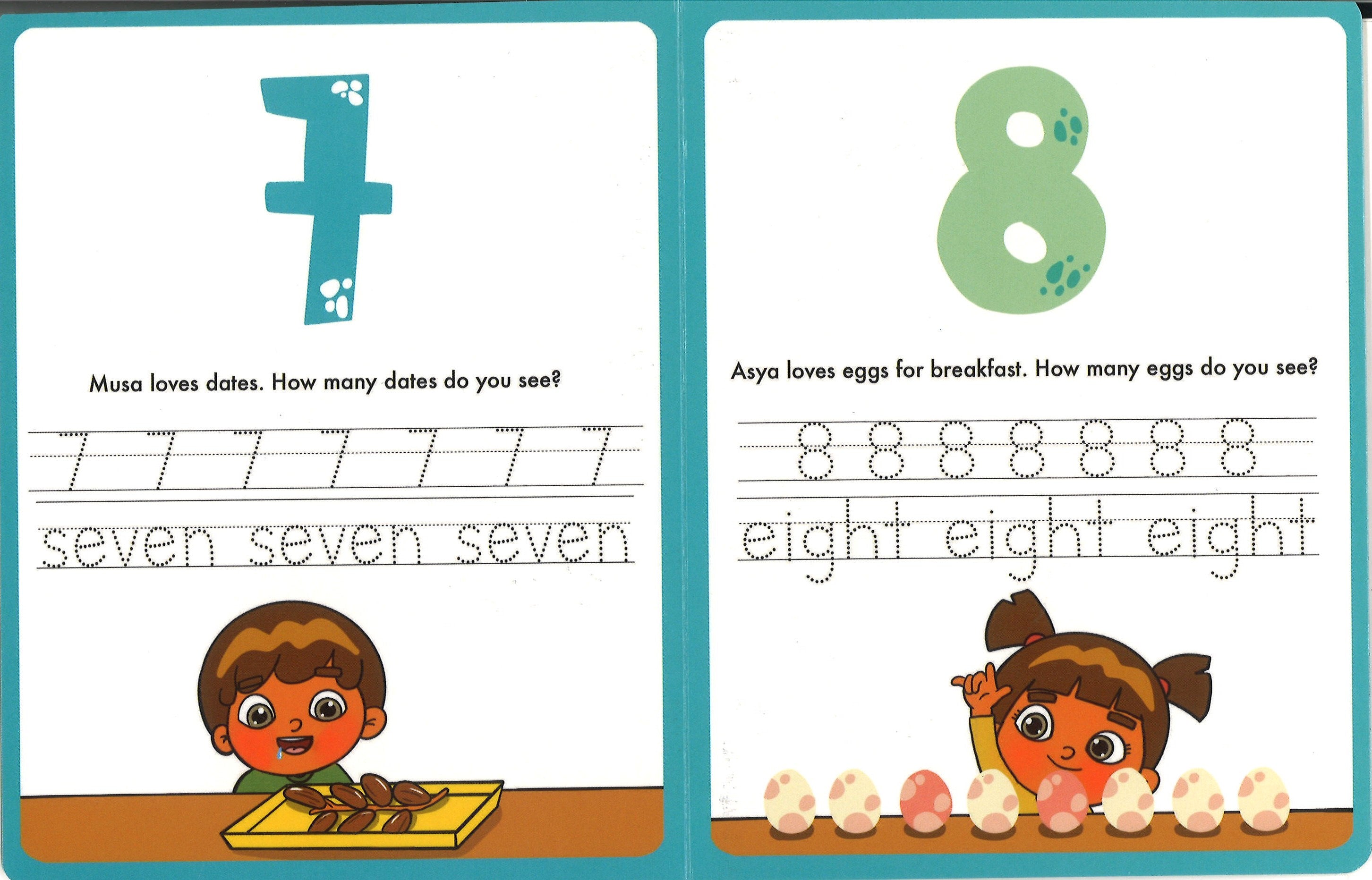 Learn to count from 0 to 10 with Asya & Musa. This book contains Islamic images and other family friendly images used to assist little muslims with counting. Also with the use a dry erase marker, your little muslim can practice tracing the numbers. start your fun and love for Islam and learning with Asya & Musa!