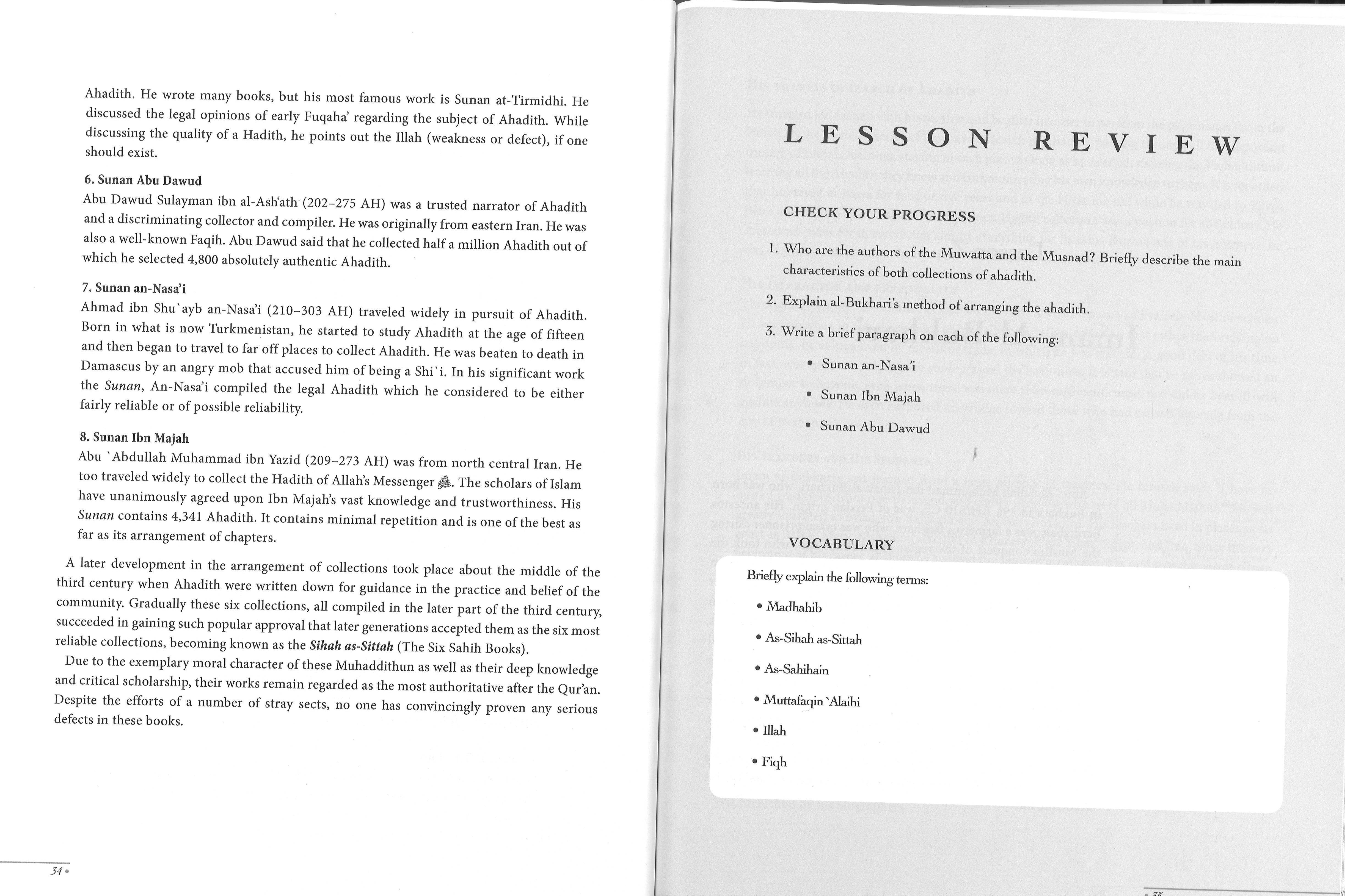 Hadith Studies for High School aims to provide high school students with a foundational awareness of hadith sciences (‘ulum ul-hadith) as well as the major collections of ahadith, which are part and parcel of Islamic religious low and spiritual endeavors. This important educational program on hadith sciences is recommended for the students of Islamic Studies at high school level, and beyond. Teachers will find it beneficial to use this book for group reading in the classroom as well as private study at home. Students will find it most useful as a means of acquiring clarity on the important points of hadith sciences and the role of the Prophet as the chief interpret of the Message of Islam.