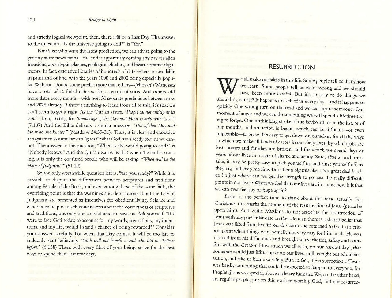 Bridge to Light is a unique contemporary contribution to the literature about Islam and an important new voice in interfaith dialogue. In this unusual approach, a Canadian convert to Islam recounts her reflections through a journey of understanding. Originally written as a series of articles, this teacher and writer navigates readers through everything from the basic tenets of the Islamic faith, to the Islamic way of life, Muslim beliefs about heaven, hell, and Judgment Day, the ego trap, jihad, evolution, and the oneness of God. Delivered in a distinctly Western style, the book presents ideas that are surprisingly accessible and it assumes no prior knowledge of Arabic or Islam. It should appeal to Muslims of all ages especially youth who want to discover or develop their faith. The book should also prove helpful to Muslims wishing to explain their religion to non-Muslim friends, co-workers, and neighbors. Beyond this, it is recommended reading for spiritual seekers who may be wondering what it is, exactly, that Islam has to offer. At this time in history where the need for interfaith tolerance has never been greater, Bridge to Light really does provide a bridge of understanding.