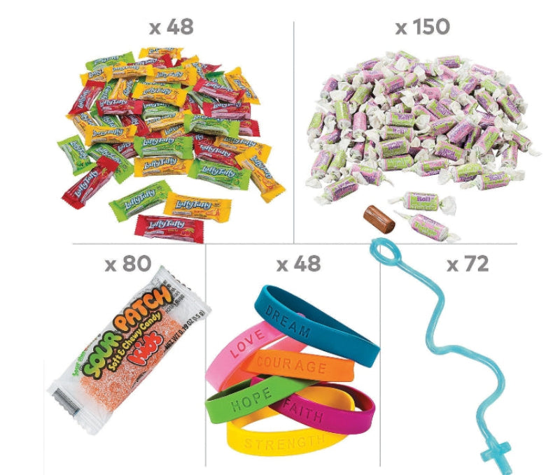 This all-in-one kit ensures your church Easter egg hunt is well-organized and full of faith-filled fun! Please note that candy types may vary, and non-returnable items are marked accordingly. For more information on product details and returns, visit our website or contact our customer service.