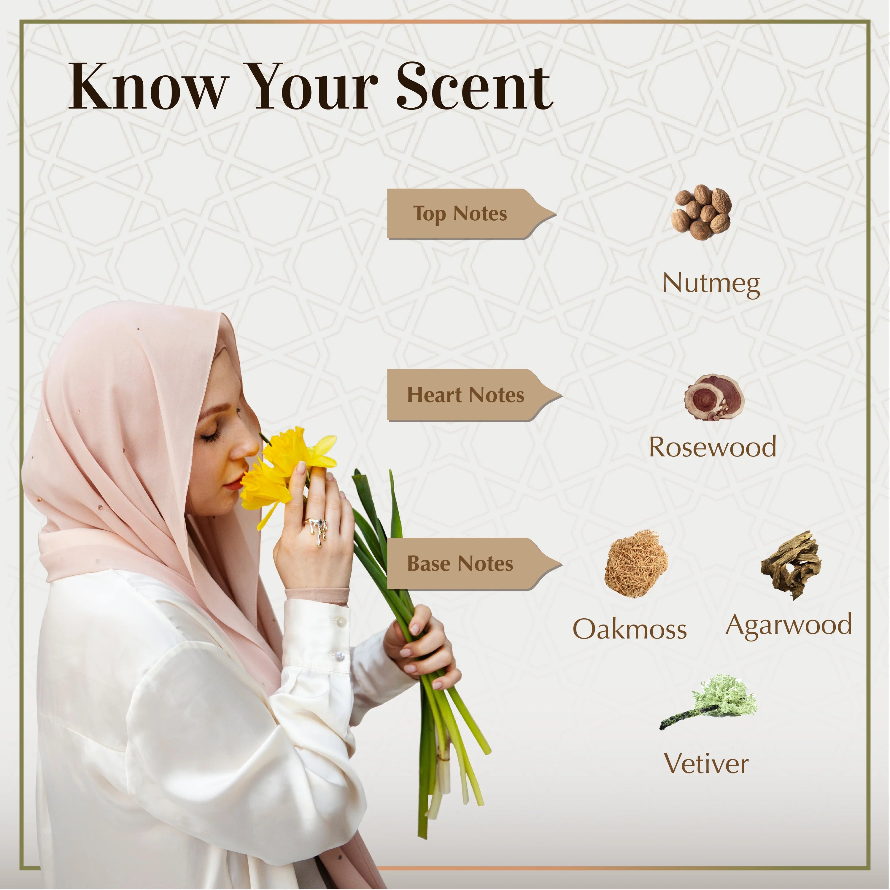 Scent profile: Oud Al Jazeera is a textured woody scent that opens with wafts of nutmeg before diving into a heart of rosewood and an earthy but uplifting base of oakmoss, vetiver, and agarwood.