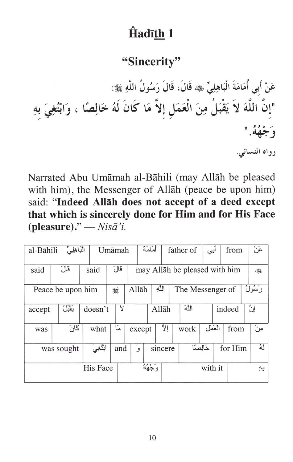 A collection of some of the most touching sayings of the Messenger of Allah (Peace Be Upon Him) to instruct young Muslims in the virtuous manners and ethics related to social interaction in Islam. Not only teachers and students will benefit from the inclusion of this book in the curriculum of their Islamic schools, but every Muslim can gain knowledge and important insight from it as well. The intent is that this collection will be value to the students of the Islamic school in America. Author did his best to select short ahadith which will make it easier on the students to memorize. It is written in an easy way to read, accompanied by brief explanations and activities. This collection covers the subject of Targhib and Tarhib (Hope and Fear). Also this collection included only authentic ahadith. Includes Arabic and English texts.