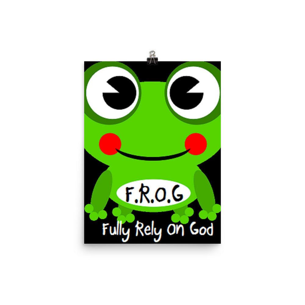 This Fully Rely On God Frog poster has a partly glossy, partly matte finish and it'll add a touch of sophistication to any room. This poster is so cute. A reminder to always fully rely on God. Put it up in a hospital room for hope.