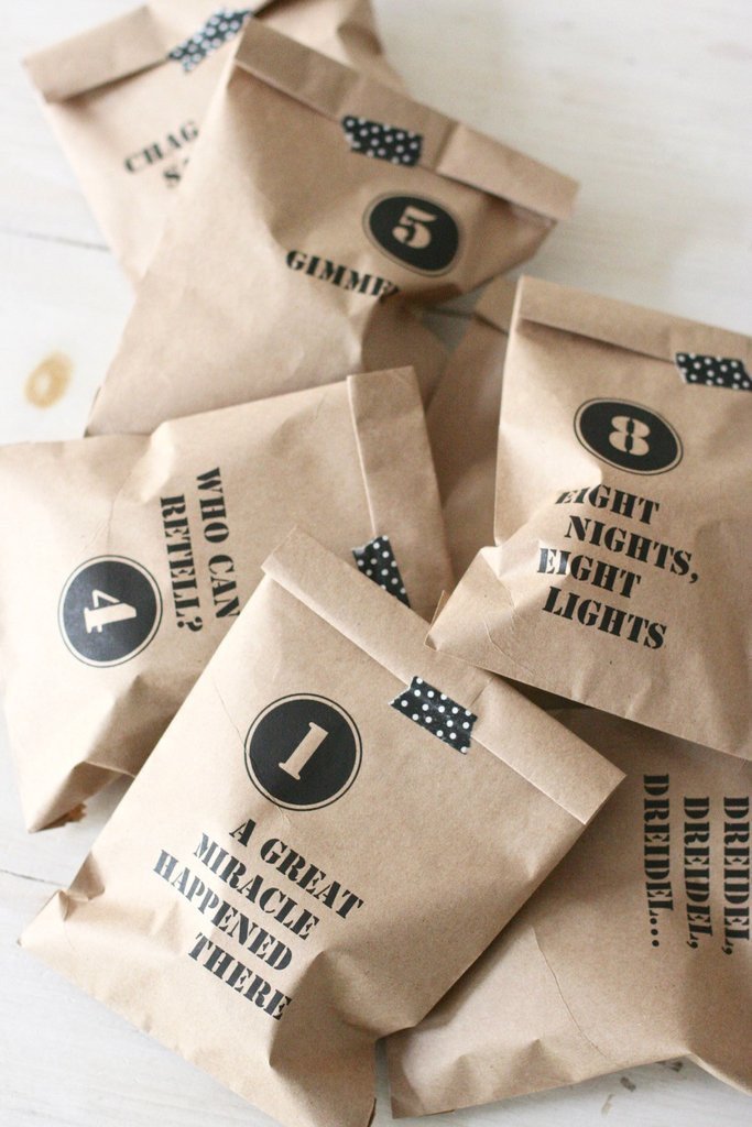 These countdown bags add anticipation for each night of Hanukkah or make adorable goodie bags for each guests' place setting. Add your own flair by closing them with twine, Washi tape, or ribbon (not included).