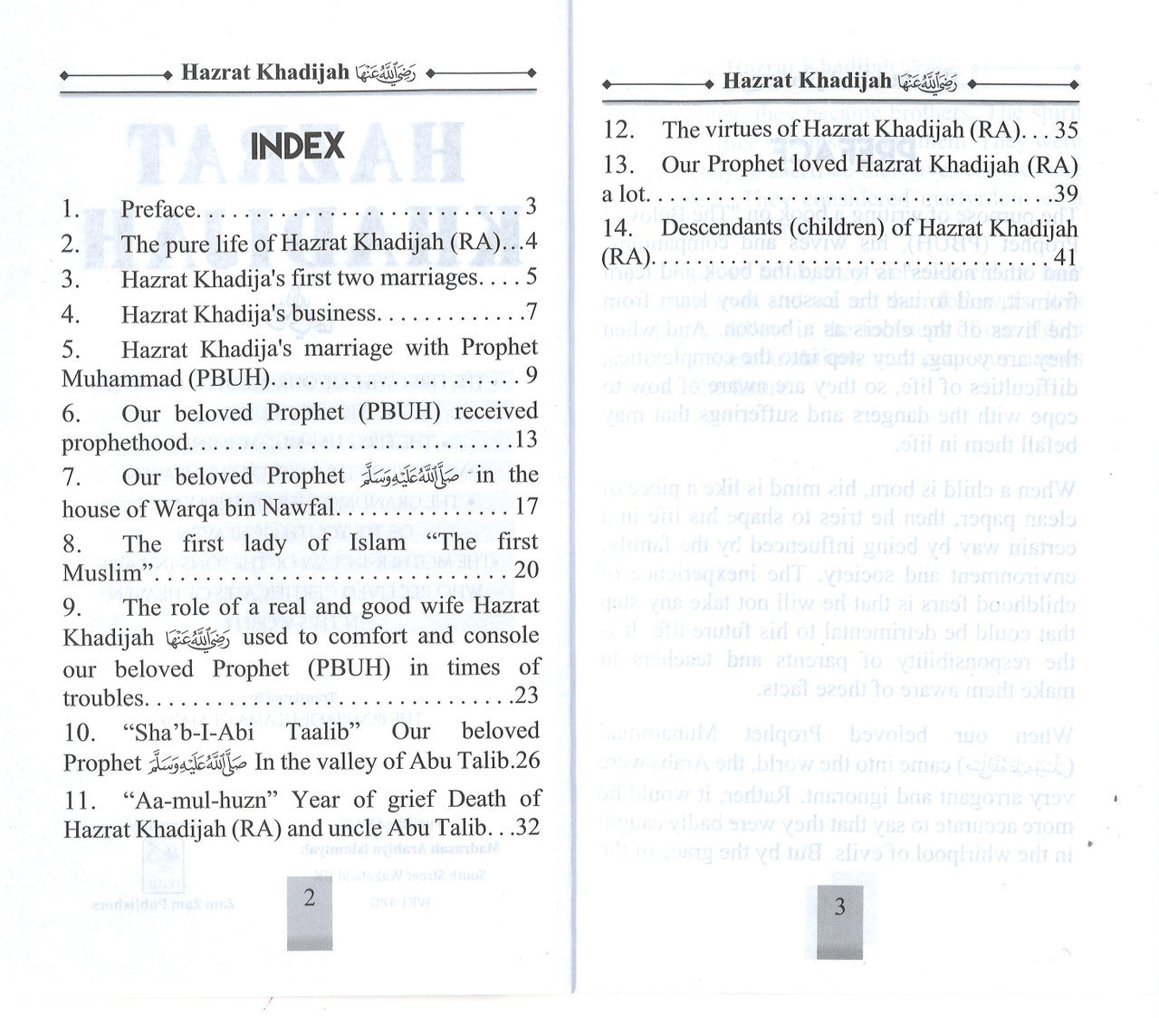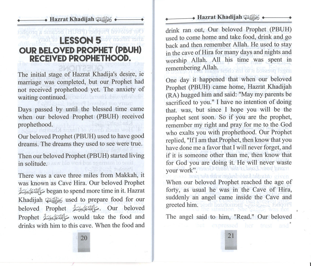 Khadijah was born to a life of privilege. Her family was important in Mekka and quite wealthy; she could have lived a life of ease all her days. Khadijah, however, was an intelligent and industrious young woman who enjoyed business and became very skilled. When her father died, the young woman took charge of the family business, which thrived and grew under her direction. Compassionate as well as hard-working, Khadijah gave a great deal of money to help others—assisting the poor, sick, disabled, widows, orphans, and giving poor couples money to marry.