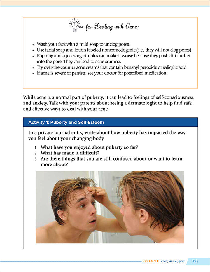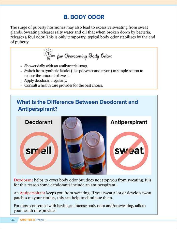 Level 2 presents topics suitable for the age group of 11 and above. The unit, Reproductive and Sexual Health, centers around the topic of puberty for both male and female students for this stage, recognizing that they are approaching or have already entered it based on their age. This level also discusses matters of hygiene common at the puberty stage including acne and body odor, as well as the Islamic rulings of taharah (spiritual purification) and body hair.
