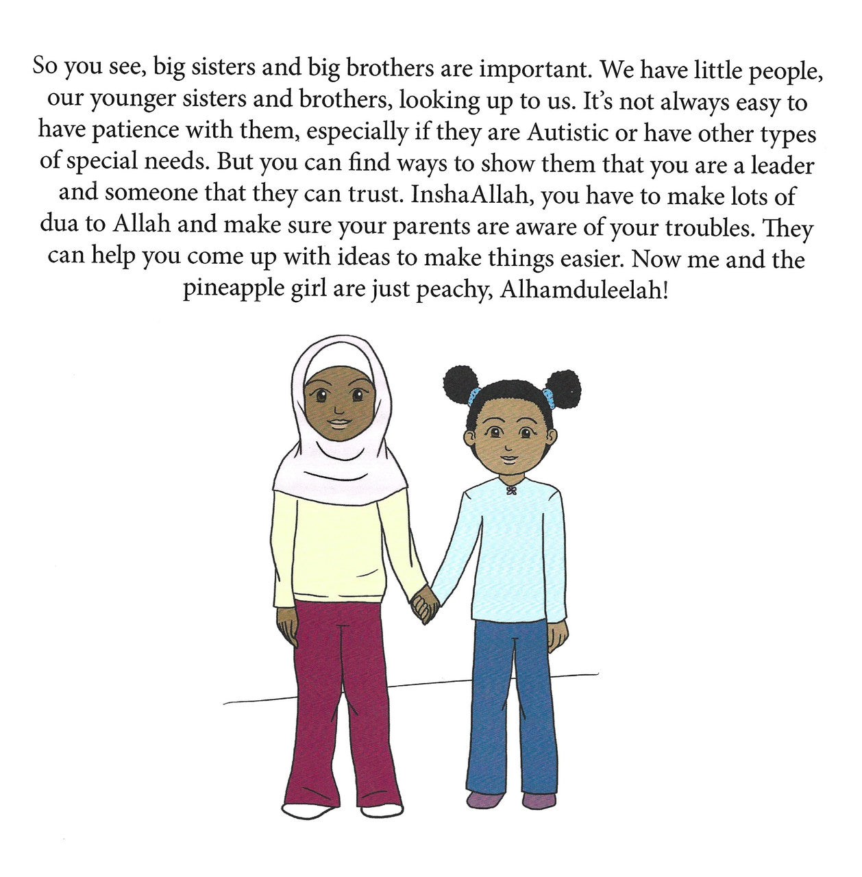 From bestselling author and educator Umm Juwayriyah -- a story told by a big sister who learns coping skills to befriend and lead her autistic younger sister. 'You see, my sister Hind has Autism. And I know that sounds like a really big word, but it's not. Autism just means that Allah made her to learn and act and think differently than other kids her age.' In the story Hind's Hands, big sister Juwayriyah learns just how special her younger sister is, despite the challenging behaviors that she often has to deal with. Author Umm Juwayriyah collaborates with her oldest daughter, Juwayriyah Ayed on this book to help spread awareness about Autism.