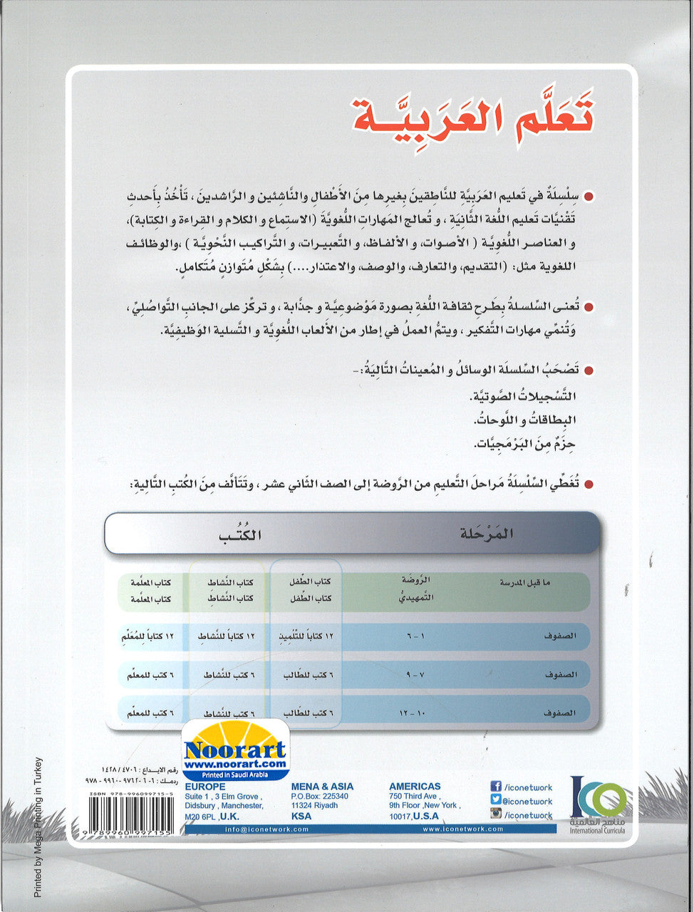 This series is designed to teach Arabic for children, young and adult foreigners who study in International Islamic Schools and institutions which use the latest techniques in teaching Arabic as a second language. The series is accompanied with a number of educational software. It also focuses on the linguistic skills and elements in a balanced and integrated way.