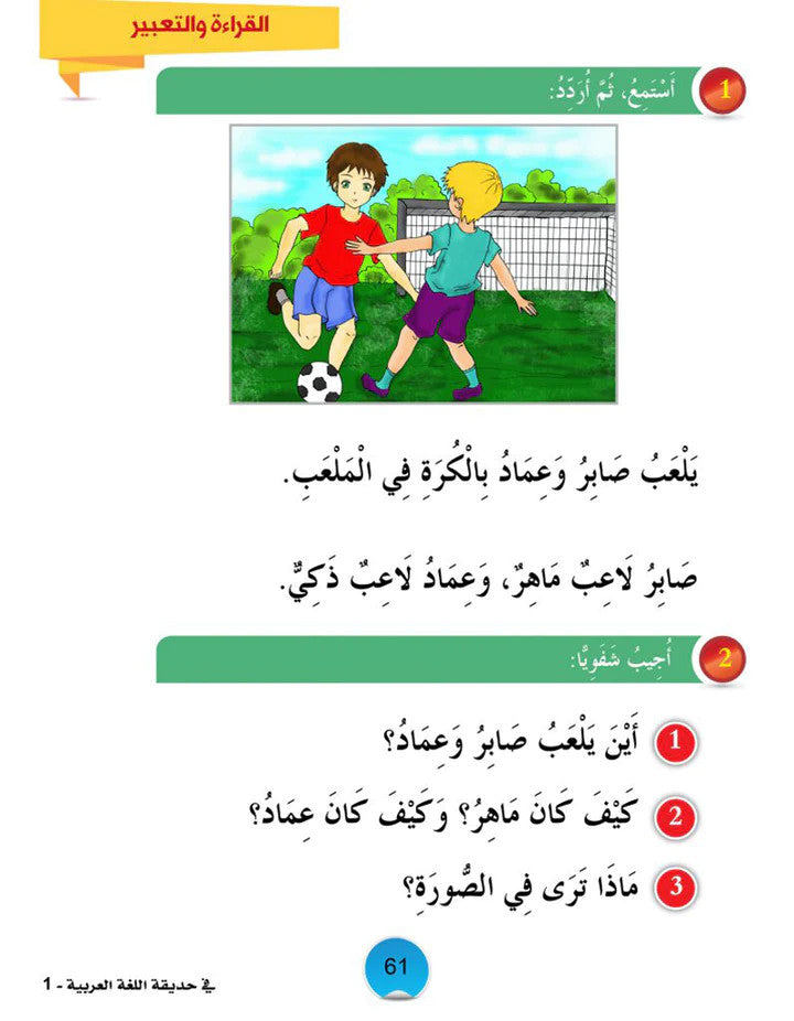 The first level in the series (In the Arabic Language Garden) for elementary non-Arabic speakers, which starts from the age of 6 -7 years, and it can also be used for teenagers up to 15 years who have not previously learned the Arabic language