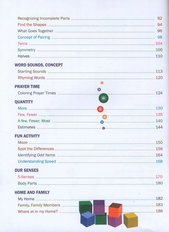 Children age 3 to 5 are a bundle of joy. They play games, run, climb, watch TV. They express curiosity about almost everything they see and experience. They see things from their own viewpoint and interpret them in their own ways. They want to experiment with new things. They have new ideas. They show new skills. It amazes parents when they see an empty cereal box can be so much fun to them than an expensive toy. They are still in the process of learning their language and sometimes multiple languages are spoken at home. As parents and caregivers, how do you deal with children of this age group? How do you help them in their learning process? How do you engage them? How do you build the right foundation and empower them? Many parents are confused by the array of activities, learning tools, and curriculum available to them. Expert educators and child psychologists have volumes to say about this process. Your 3-year-old is transitioning from being a toddler to a preschooler. There is a lot to expect as the transition happens. Five key developments during this transition are as Physical development Emotional development Social development Cognitive development Language development Of these five areas of development, the cognitive and language developments in a 3-year-old are important. Cognitive development is not all about learning the alphabet or how to count. Similarly, language development is not about expressing needs and wants. Both cognitive and language development entails the entire learning process and absorbing information. This involves observing, processing, and understanding information. Weekend Learning Publishers is glad to announce the publication of a new book titled, PRESCHOOL ACTIVITY BOOK. This book is mainly an activity book with very limited text to support the activities. In many cases, a teacher, or caregiver will require to explain the objective of the activity.