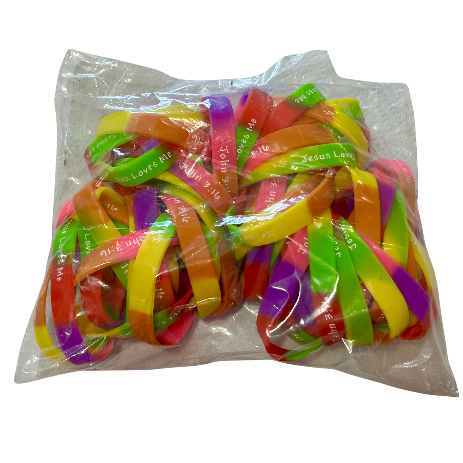 50-Pack Christian Youth Silicone Bracelets – Jesus Loves Me & John 3:16 Bible Verse Wristbands – Colorful Religious Rubber Bracelets for VBS, Church Camp, Sunday School, and Kids’ Gifts