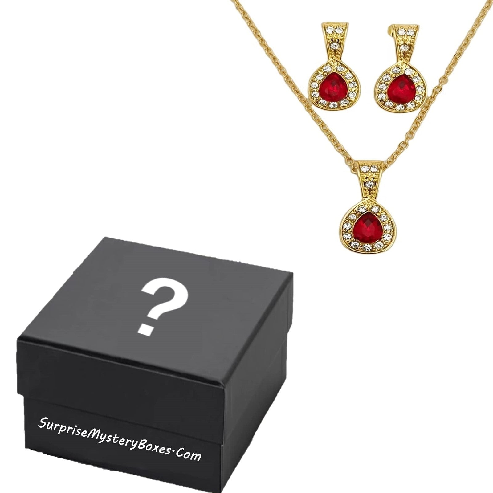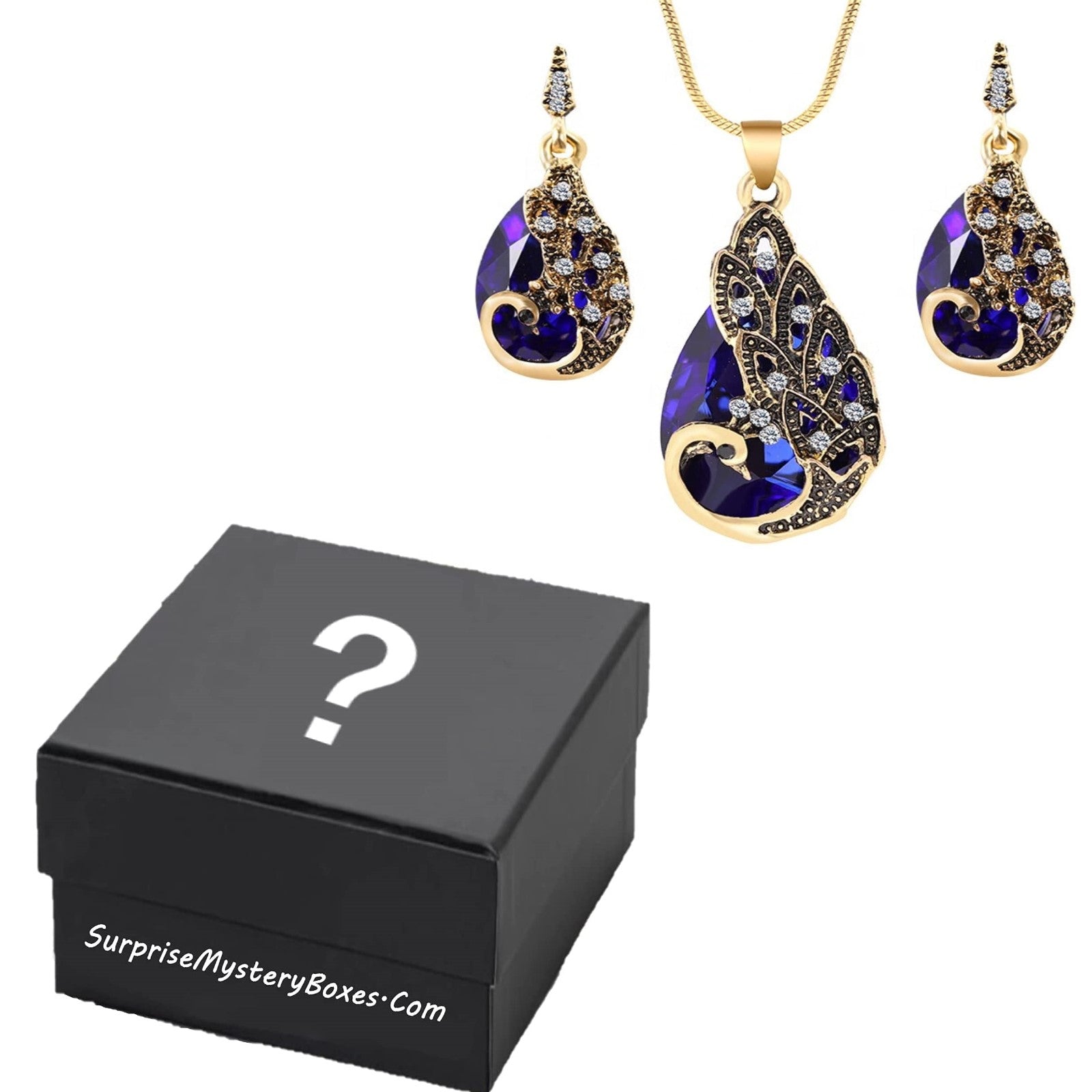 You get more than your money’s worth. These make great Birthday, Christmas, and Valentine's gifts. Random top quality jewelry in each mystery box. Absolutely gorgeous. You could get earrings, and necklaces. I love getting surprises, don't you? Get one for yourself and give them out as gifts. The mystery surprise jewelry comes in its own cute little 4' by 4' black box.