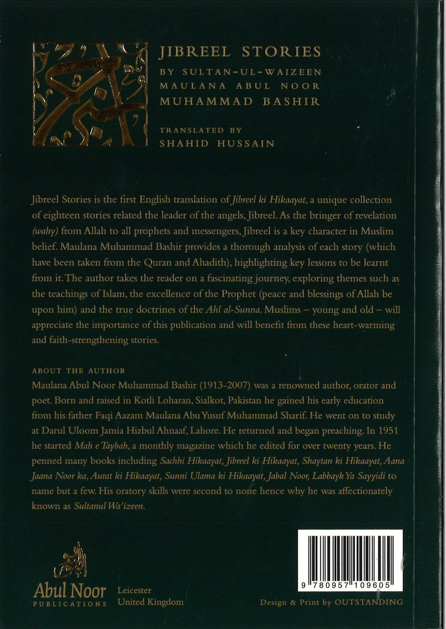 Jibreel Stories is the first English translation of Jibreel ki Hikaayat, a unique collection of eighteen stories related the leader of the angels, Jibreel. As the bringer of revelation (wahy) from Allah to all prophets and messengers, Jibreel is a key character in Muslim belief. Maulana Muhammad Bashir provides a thorough analysis of each story (which have been taken from the Quran and Ahadith), highlighting key lessons to be learnt from it.