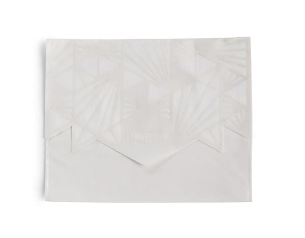 This is truly artistry with a purpose: to honor the ancient Passover Seder in modern style. Drawing inspiration from a love of contemporary design and mission to honor Jewish heritage, Apeloig Collection is pleased to announce the launch of an upscale and uniquely designed afikoman bag. Designed with an emblematic laser-cut geometric pattern, the effect is a modern take on the Star of David. The tulle fabric envelope acts as optical illusion that plays with depth and light to truly honor the ancient ritual.