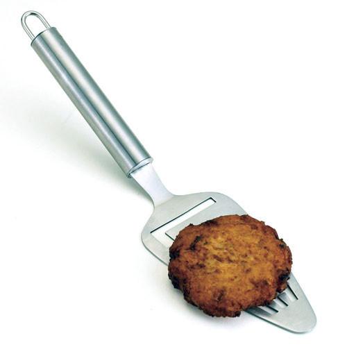 Your Hanukkah meal will be complete with this elegant and sleek latke stainless server. With the word 'latke' carved out on the serving surface, you and your guests will enjoy every delicious holiday bite! Lightweight, and built to last for many Hanukkahs to come, the latke server is dishwasher safe.