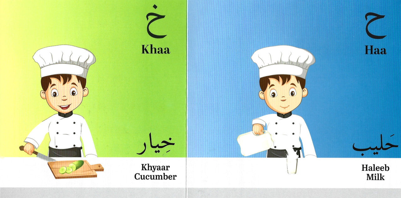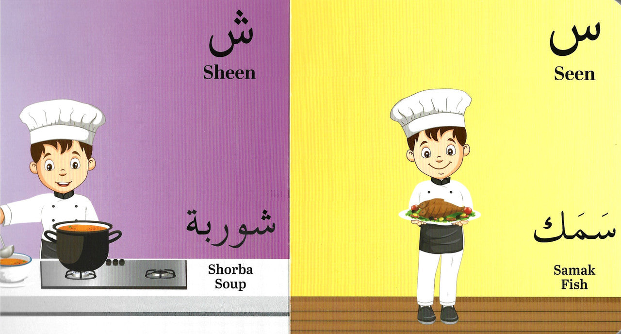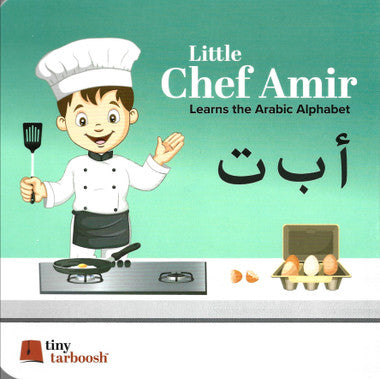 Little Chef Amir Learns the Arabic Alphabet Book, Alif Baa Taa book, glossy bilingual children's board book for toddlers and kids.