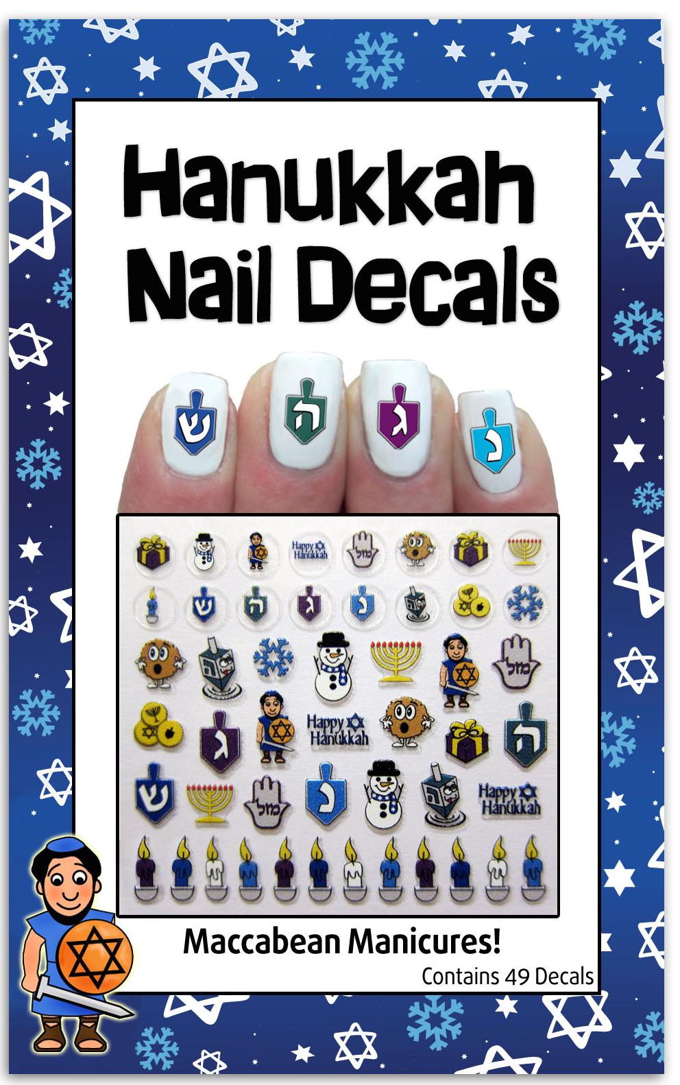 Get festive this Hanukkah from your fingers to your toes! Have the best latke-flipping manicure on the block. Hanukkah decals from Midrash Manicures include Judah Maccabee, dreidels, an adorable latke, and even a Jewish snowman. Contains 49 decals.