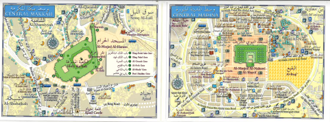 A beautiful pop out map of the two Holy cities Makkah and Madinah.