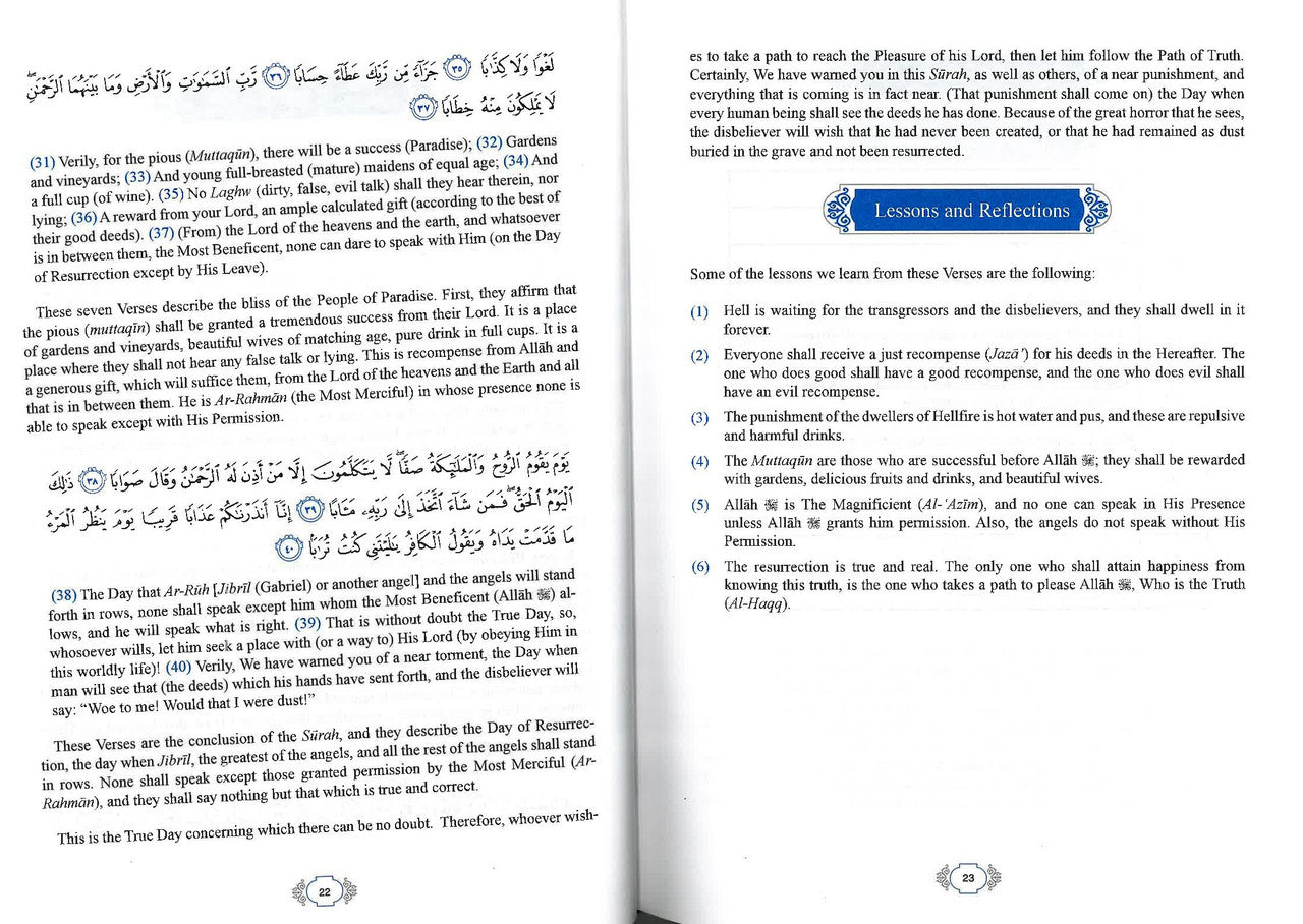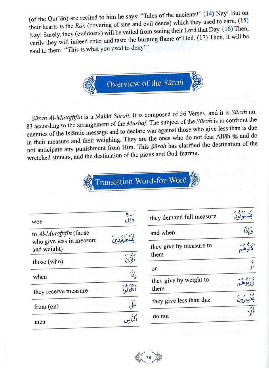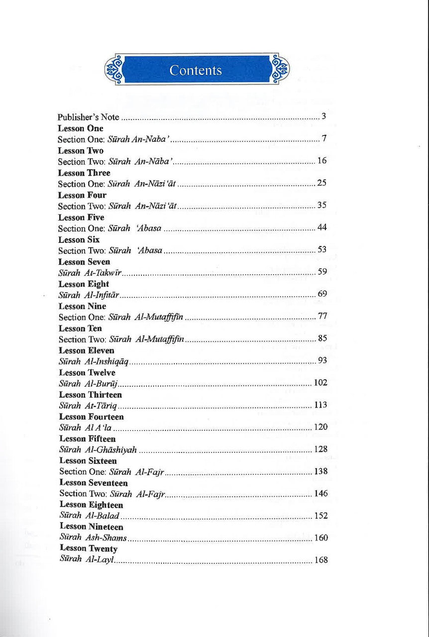 The Prophet tells us, 'The best of you is the one who learns the Qur'an and teaches it.' [Al-Bukhari] In your hands, you now have an excellent tool for anyone who would love to just that. The structure and simplicity of al-Tafsir al-Manhaji make it suitable for students of all ages. It has been authored by a team of scholars, all of them experts with Ph.D's in Tafsir, and reviewed by the famous scholar and da'iyah, Dr. Umar al-Ashqar. The goal of this textbook is to provide full-time and weekend Islamic schools a complete curriculum for teaching Tafsir of the Noble Qur'an to their students. It is suitable for students who have no background in studying the Qur'an or Arabic but will also be beneficial for those students seeking a basic tool to improve their understanding. This Tafsir provides a brief overview of the subject(s) and background of every Surah. It is broken up into lessons, and every lesson provides a list of important vocabulary, commentary, a list of important reflections that can be derived from the verses, and questions to test the students' reading and comprehension. Many lessons also incorporate special exercises such as essay questions or small research assignments to help build the students' knowledge and understanding of the Qur'an.