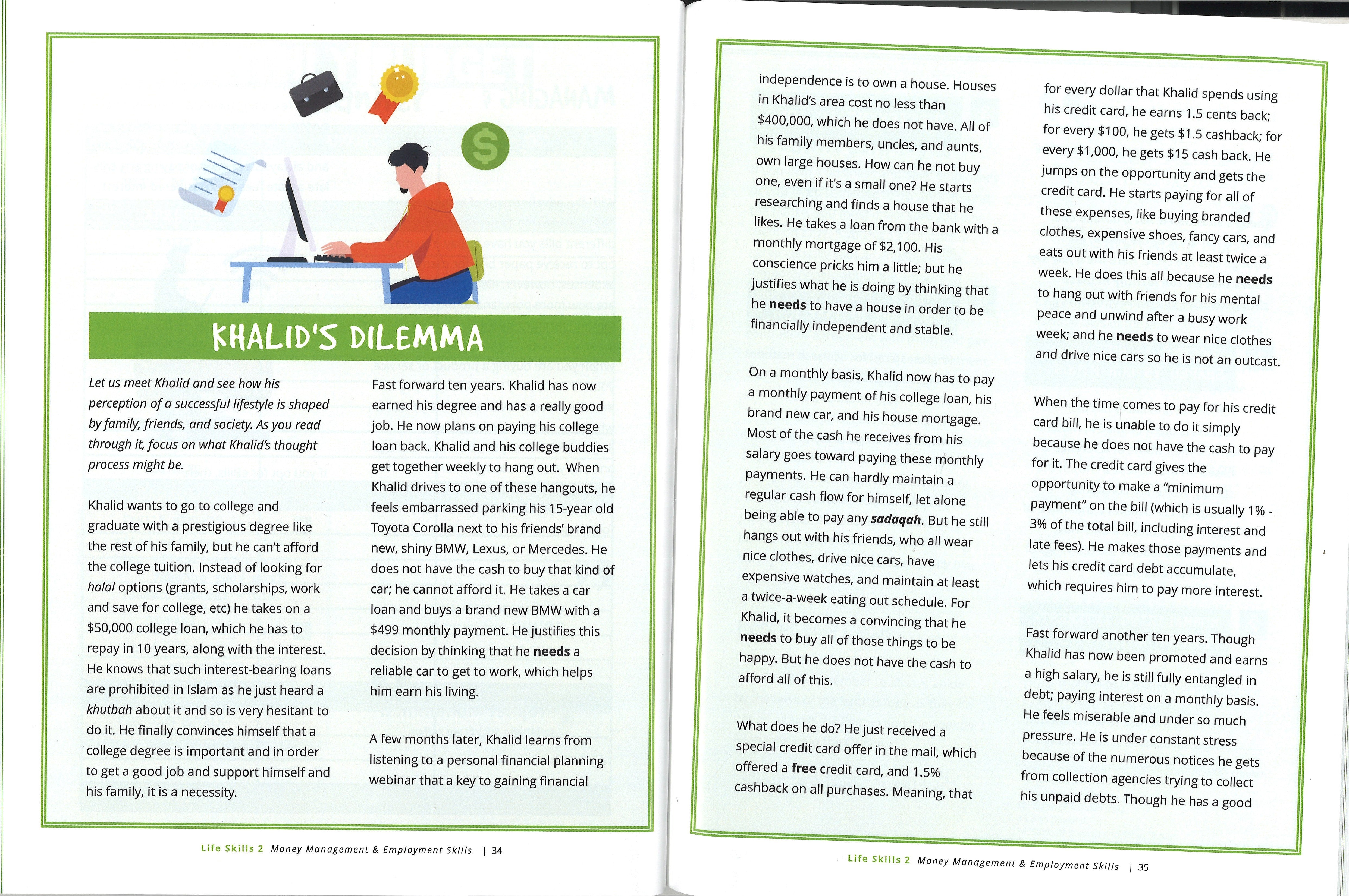With colorful images, activities, scenarios designed for readers to learn and apply managing personal finances and career skills with an Allah-centric approach: from understanding all aspects of personal finances (budget ing, investing, etc) to career choices and tips on overcoming common work related challenges for Muslims. It is a must read for Muslim youth and adults alike!
