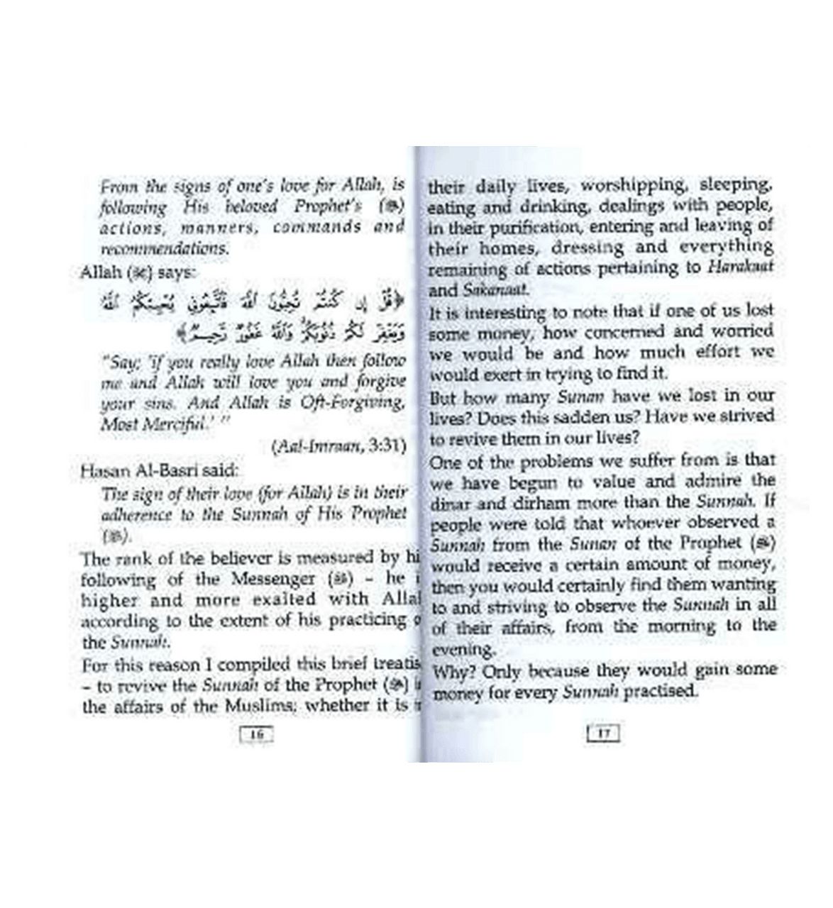 This is a pocket size version of the book 'More than 1000 Sunan for Every Day & Night, which is based on the Arabic Book 'Akthar min alf Sunnah fee-al-yawm wa al-laylah'. In the course of a normal day, many of us are capable of practicing over 1,000 Sunan, and it does not sound amazing. For sure, in clinging to the Sunnah is safety and security, since Imaam Maalik said: 'The Sunnah is like the Ark of Noah-whoever embarks on it reaches salvation and whoever refuses is drowned.' Statements and actions of the Prophet Muhammad (S) have been included in this short booklet which are performed in a usual day - how many of these are part of our daily lives? Over 1,000 Sunan Every Day and Night is complied by Shaykh Khaalid Husaynaan and is in the English-language translation of the Arabic booklet. He is a modern student of knowledge of our time who is preoccupied with reviving and following the Sunnah of Prophet Muhammad (S).