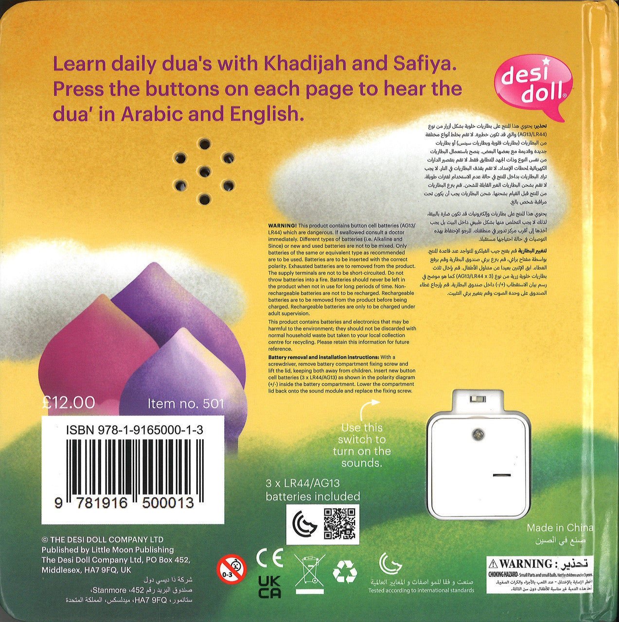 Read, press the sound buttons on each page, listen and learn the duas’ in Arabic and then hear the translations in English.