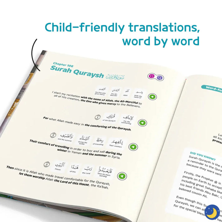 Using the Kiitab-enabled technology, 'My First Surah Book features interactive activities and fun illustrations that make learning easy and enjoyable. Children will not only learn how to recite the words of Surah Al-Fatiha but also the meaning behind them and how to apply them in their daily lives.