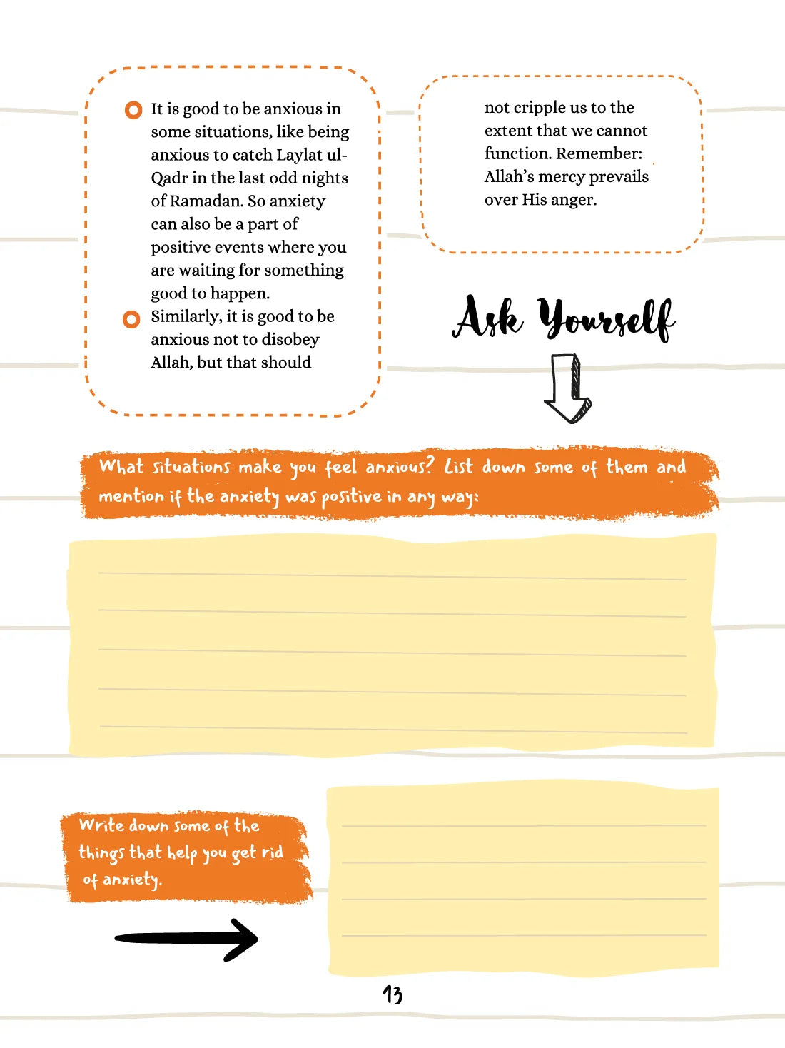Even adults can use this journal for self-reflection and to understand and appreciate the amazing way in which divine guidance focuses on emotions and ways to channel them in the best way to achieve Jannah.