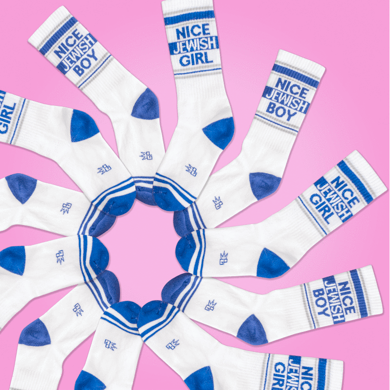 A NJB deserves some NJS- nice Jewish socks, that is! Blue and white Nice Jewish Boy Socks are fun and stylish.