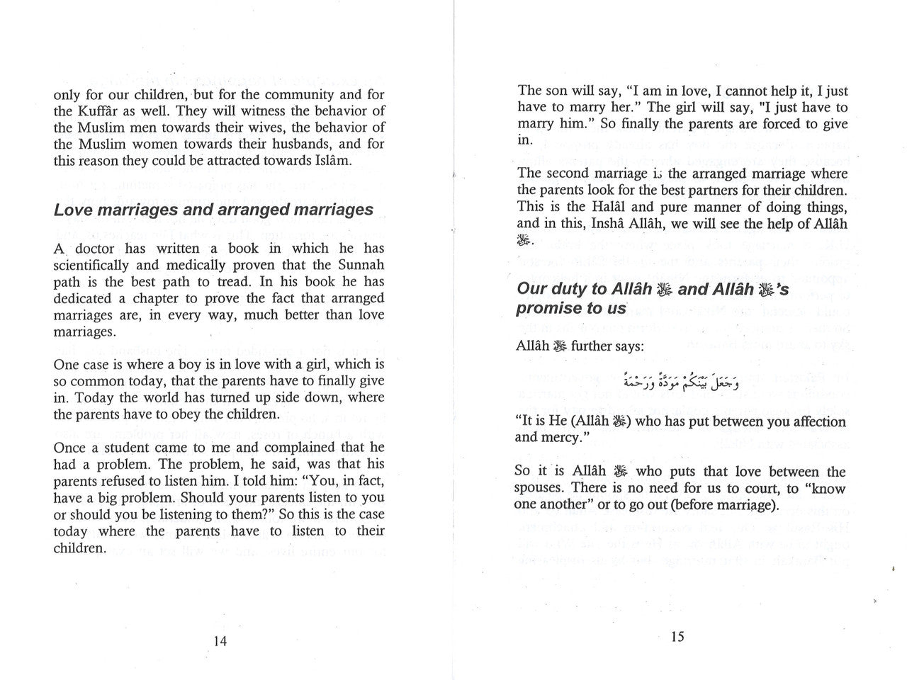 This booklet is based on a sermon given in a marriage ceremony by Moulana AbdulHamid Ibrahim Ishaq. It outlines Islamic perspective on marriage and the rights of husband and wife. Includes advices and guidelines for the marriage partners.