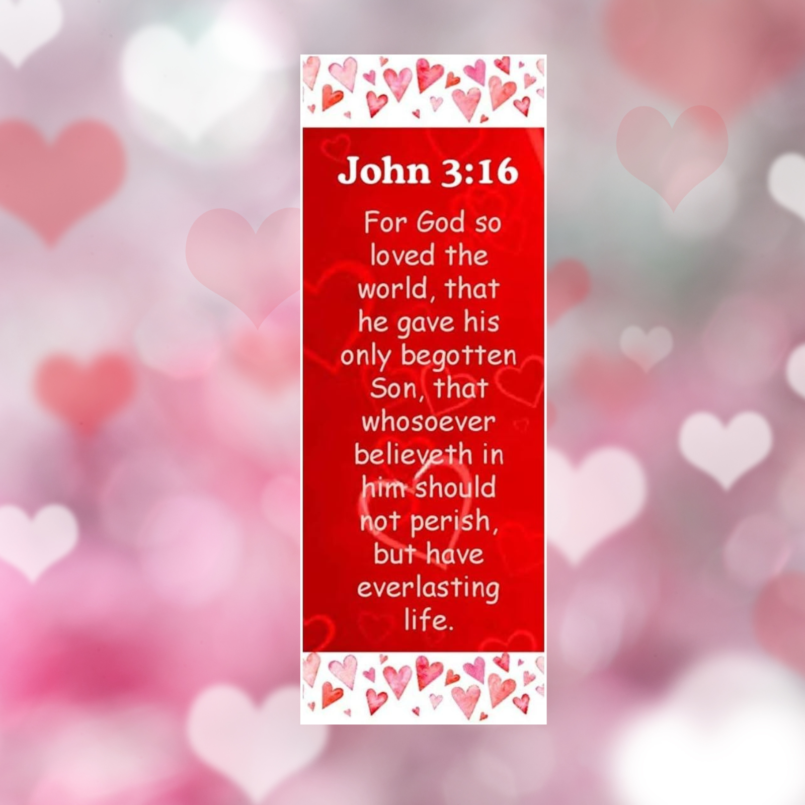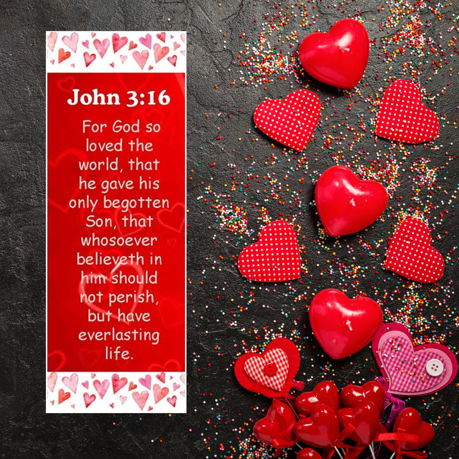 Introducing a bundle of 100 heartfelt Valentine's Day bookmarks, ideal for your classroom celebration. These serve as wonderful tokens for student exchanges, spreading love and faith. Each bookmark features the touching Bible verse John 3:16: