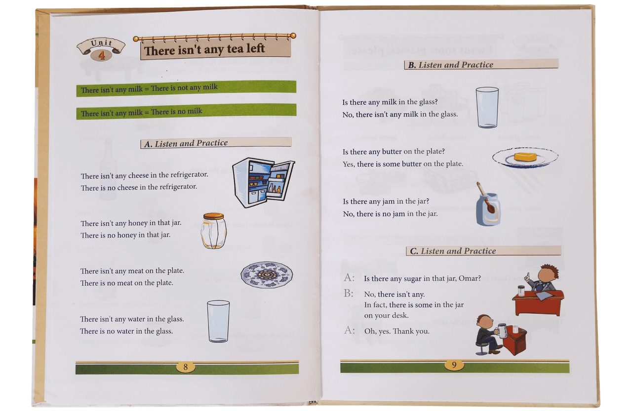Each unit begins with the vocabulary words and expressions intended to be used in the unit out of context; some other units begin with the grammatical points to be covered in them. Grammar points are carefully graded in the course. There is no explanation of grammatical points, as this places a great burden on the learner`s shoulders and tends to put him off learning the language altogether. Therefore, grammatical points have been presented communicatively through the use of a variety of short conversations that will help give the learner an idea of how they can be accurately used.