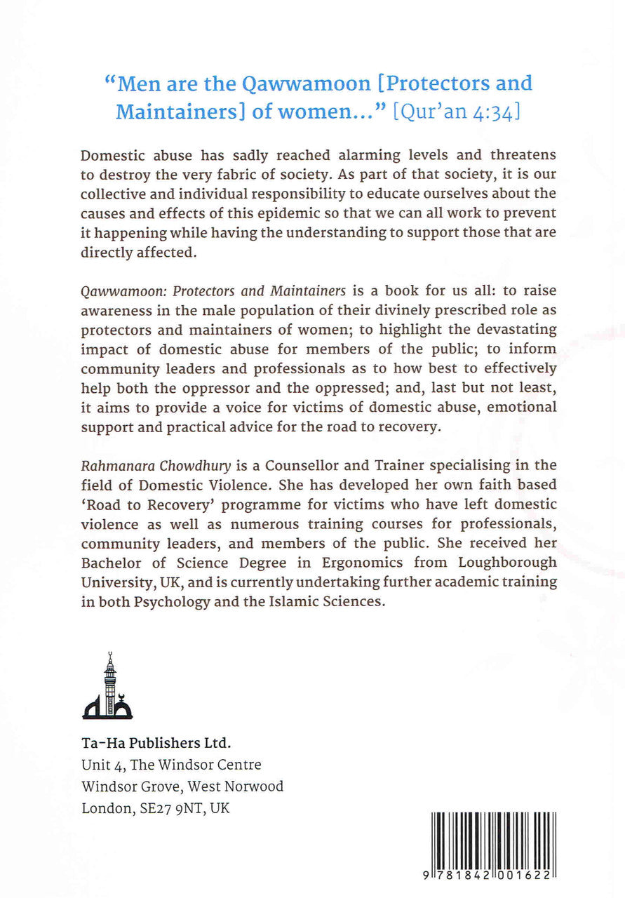 Qawwamoon: Protectors and Maintainers is a book for us all: to raise awareness in the male population of their divinely prescribed role as protectors and maintainers of women; to highlight the devastating impact of domestic abuse for members of the public; to inform community leaders and professionals as to how best to effectively help both the oppressor and the oppressed; and, last but not least, it aims to provide a voice for victims of domestic abuse, emotional support and practical advice for the road to recovery.