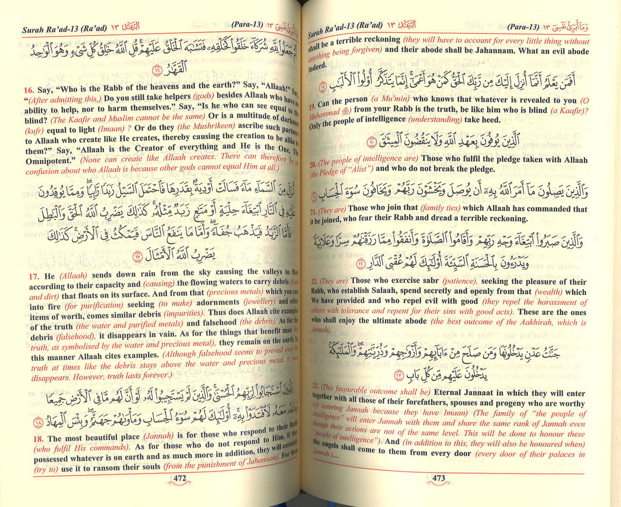 It also contains an Introduction to the Quran, revelation, authority of the Quran, compilation of the Quran, the etiquette of reading and reciting the Quran, a glossary of terms and names, and the science of Tafsir.