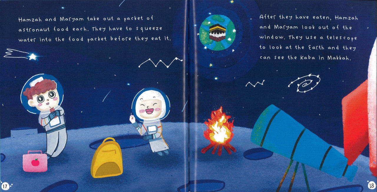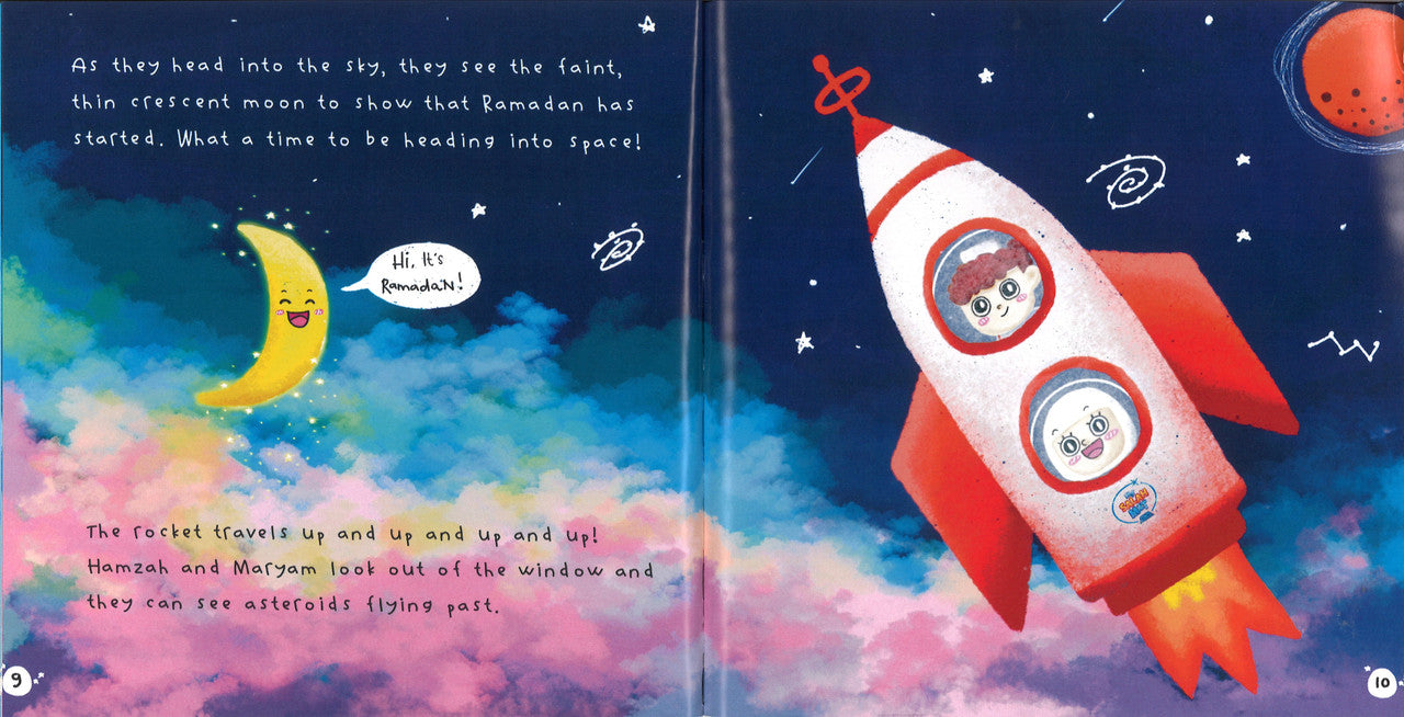 Behind The Story - A story inspired by the experience of Prince Sultan bin Salaman, who in 1985 became the first Muslim in space, selected by NASA to serve as a payload engineer on the American STS-51-G Space Shuttle mission. During his time in space he observed Ramadan, so we wanted to create a story that would educate children about this unique topic.