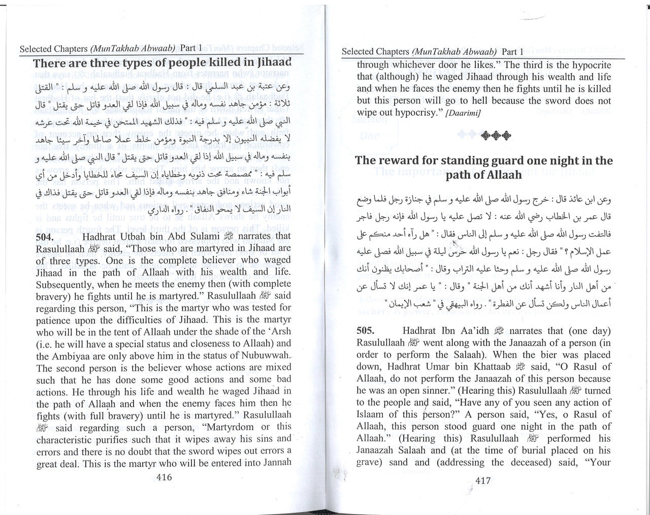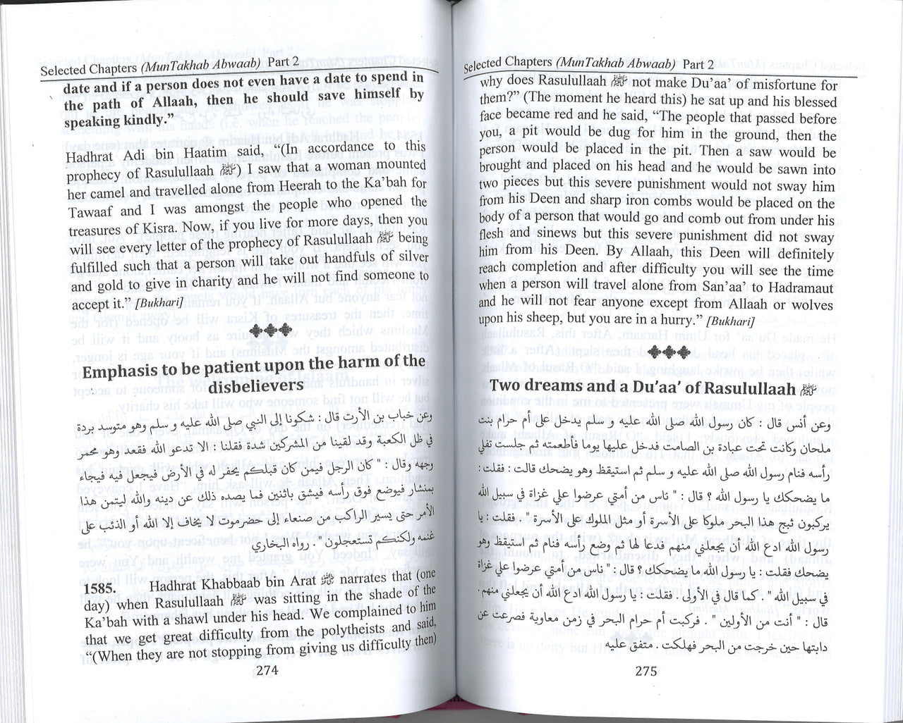 The book has Eight chapters compiled by Moulana Muhammad In'aam ul Hassan Kandehlvi, Third Ameer of the Tablighi Jamaat, upon the indication of Moulana Ilyas Kandehlvi, First Ameer of Tablighi Jamaat. It was published with the name of Al Abwaab Al Muntakhabah. Then Moulana Yunus Palanpuri rendered it into Urdu, whilst Mufti Ameen palanpuri who teaches Mishkat in Darul Uloom Deoband edited the translation and added a heading before every Hadith so that the readers can easily understand the Hadith. This book will create the temporary nature of this world and conviction in the Aakhiraat. It contains 2320 Ahadith and concise explanation in brackets. It should be read, studied and included in Syllabus.