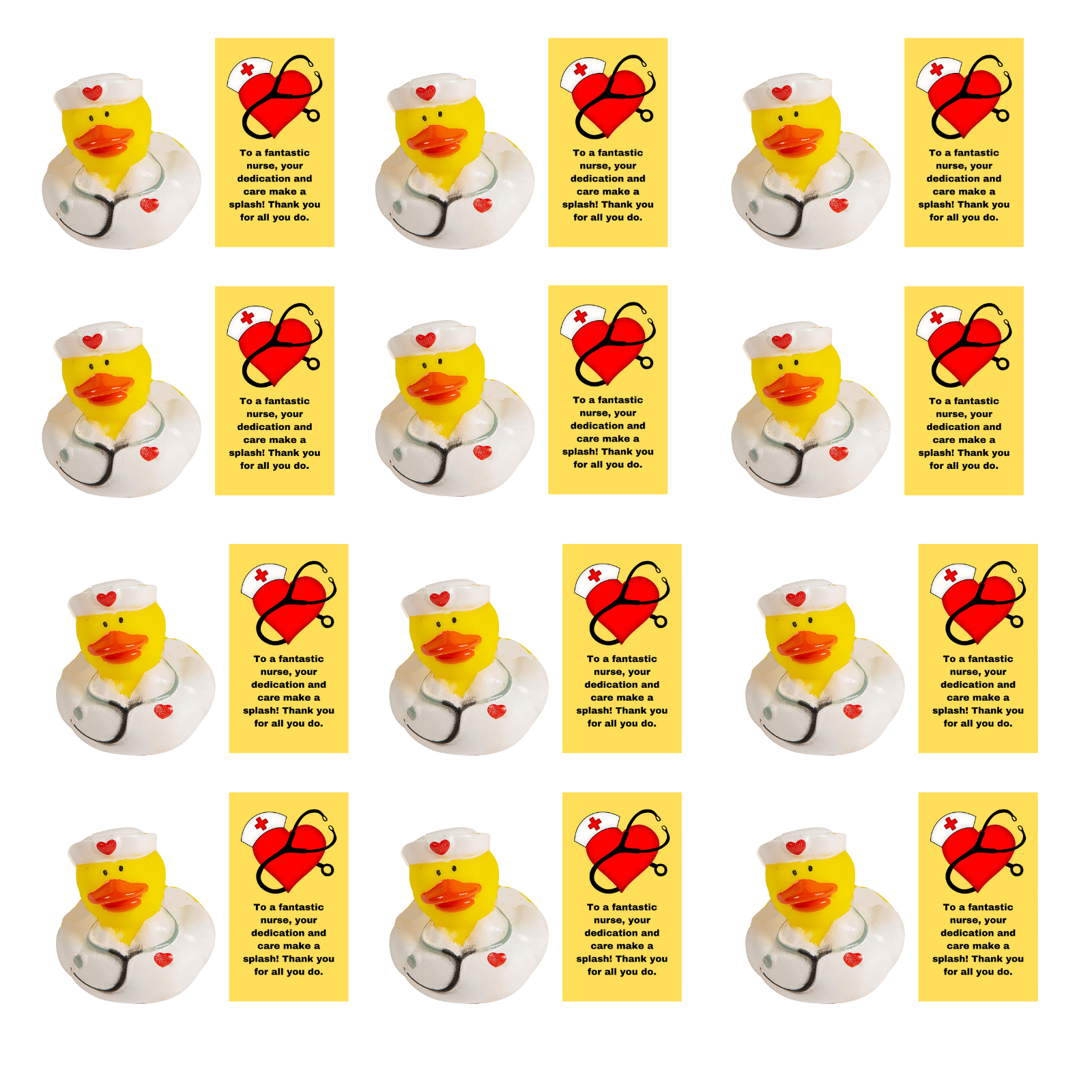 This set of 12 nurse-themed rubber ducks with matching thank-you cards is a fun and meaningful way to show appreciation for nurses, doctors, dentists, dental hygienists, and other medical professionals. Each high-quality rubber duck is decorated with colorful medical symbols and makes a playful decoration for clinics, hospitals, or even Jeep ducking!