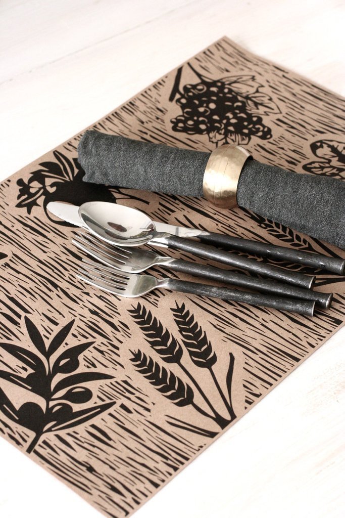 Your guests will delight at the novelty of these seven species placemats depicting the seven species of Israel in a woodcut motif. Use them 'as is' for placemats or let your crafty side take over and use as gift wrap, goodie bags, and more. Perfect for Sukkot, Shavuot, and other Jewish holidays.