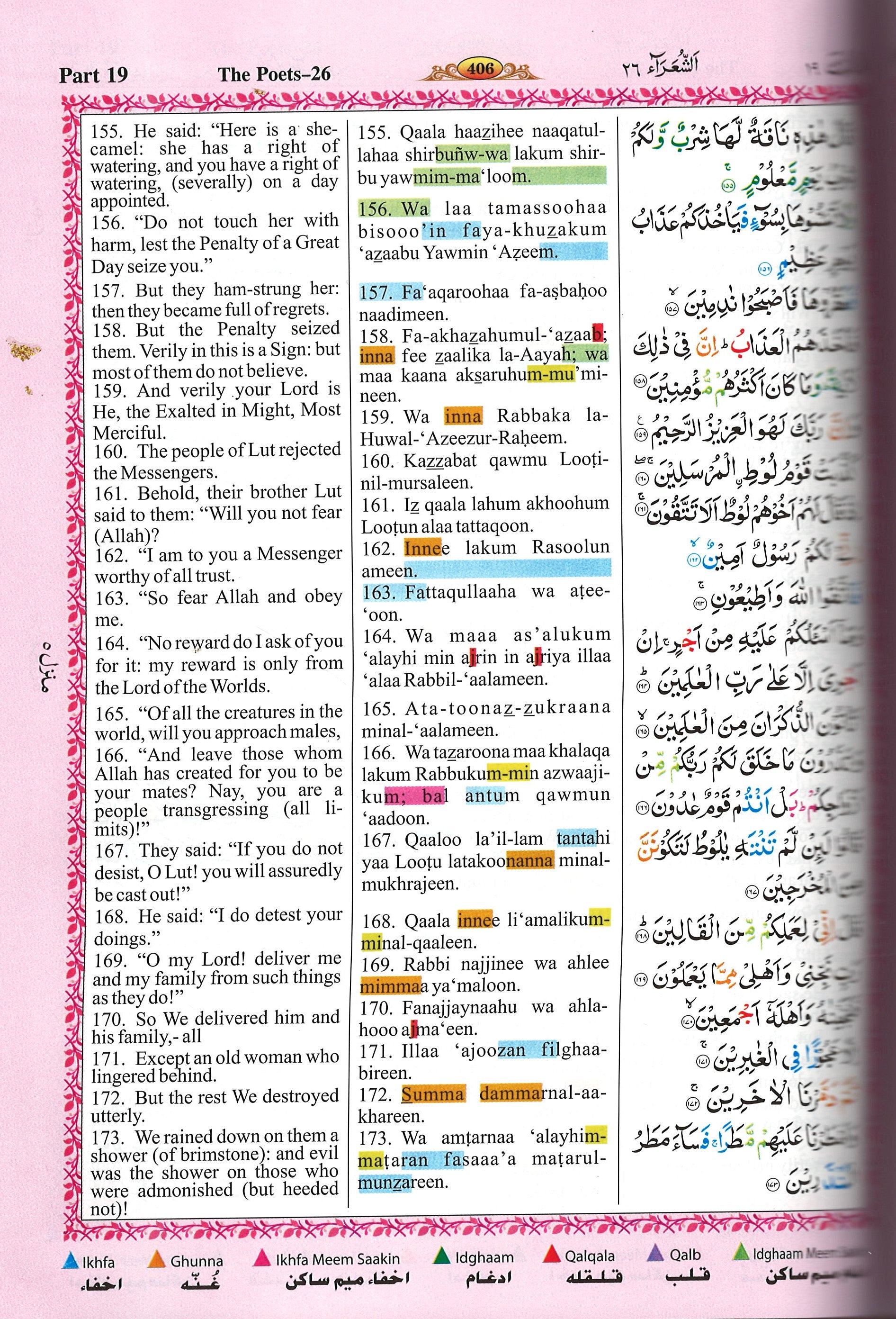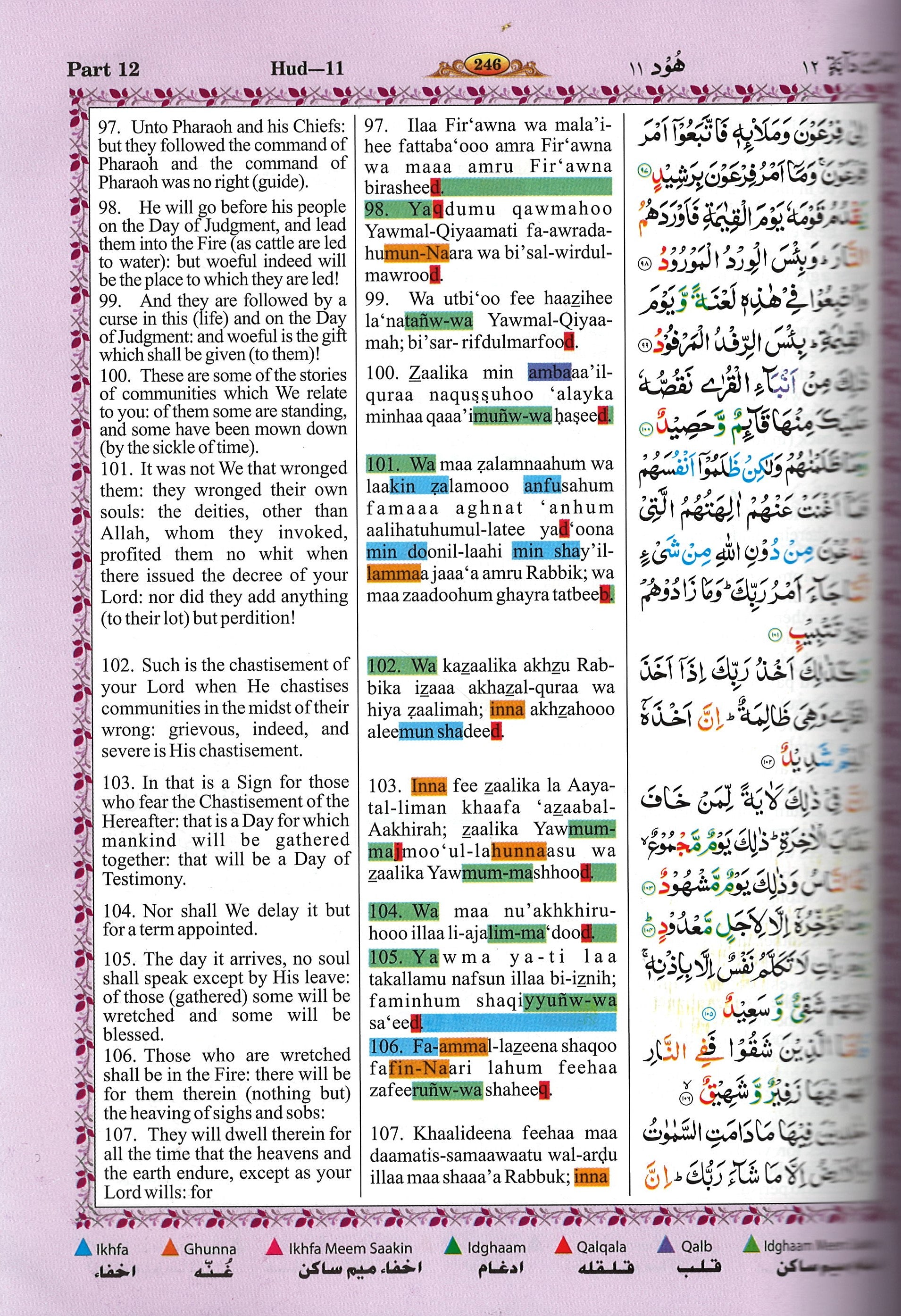 A new translation featuring the Quran in full Arabic text (Majeedi) along with the pronunciation of the Arabic text plus the English translation.