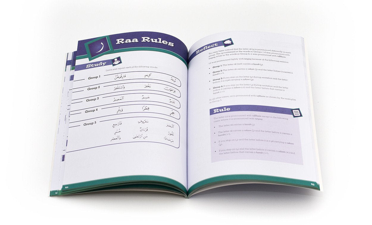 Tajweed Untangled is the clear-cut guide to learning the art of Quran recitation. The beauty of this book extends beyond its attractive layout and design and permeates to the way it fundamentally reviews the teaching methodology of this noble skill. The chapters in Tajweed Untangled begin with real examples from the Noble Quran demonstrating a rule in action. After listening to the examples, readers are encouraged to reflect and decipher the rule for themselves. Rules are then explained clearly and rendered in a salient layout for easy revision. Written tasks and practice lines then follow to help reinforce the application of the rules. The clarity and effectiveness of both the methodology and layout make Tajweed Untangled an enjoyable and beneficial experience for children and adults alike. This paperback book contains 76 pages in full colour and is approximately A4 in size.