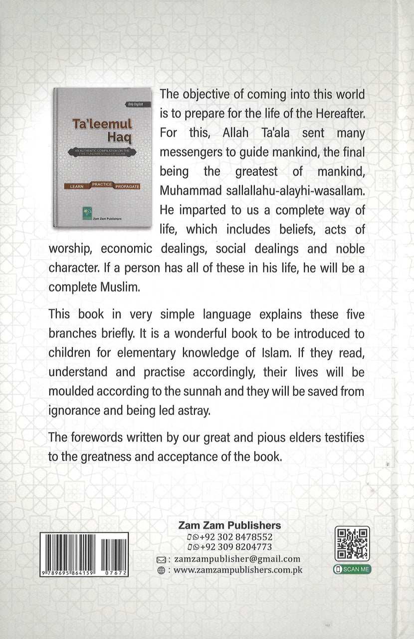 In his book, basic beliefs, practices, character, and devotional aspects (of Muslim life) have been explained in simple language with the ruling on Wudhu, Namaz, Fasting, etc.
