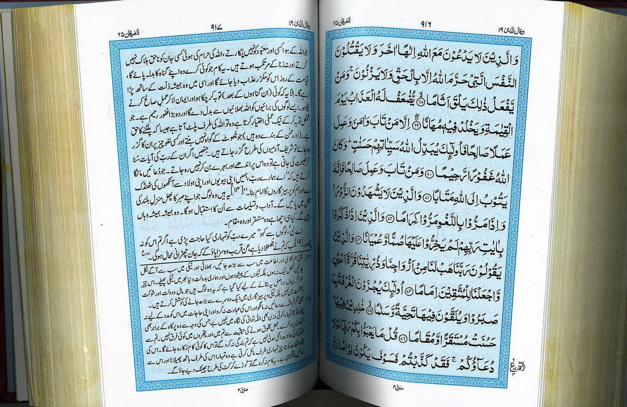 Tarjuma Quran in Urdu, 14 Lines Majidi Script with Meaning of the Holy Quran. Translation and commentary by Mawlana Abul Ala Mawdudi.