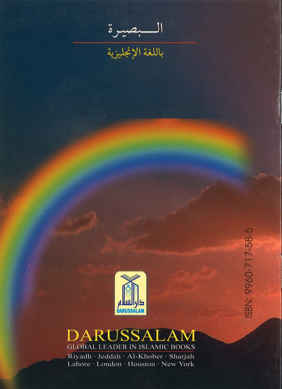 Ibn Umm Maktoom, a blind man gifted with spiritual insight, came to the Prophet with a query. Since the Prophet was busy at the time, he did not attend to the blind man. The latter walked away still groping for an answer. It was on such an occasion that on of the Surah of the Noble Quran (Surat Abasa, 80:1-10) was revealed in which Allah the Almighty admonished the Prophet for not paying attention to the blind man who was sincere to his faith. 'AL-Bsaeer', or the one with true sight, illustrates the life of Ibn Umm Maktoom who had a rare insight which his wife could not detect. It was for this resaon that she was charmed by the show of wealth displayed by the Arabs of that time. Impressed by their riches, she would urge Ibn Umm Makhtoom to go out and buy himself a new dress or some other trinkets for her own use. But he had no interest in the luxuries of this world, since his priorities were different. This small book carries a message for all of us. It shows that we should not be carried away by the glitter of wealth and beauty. All this is a passing phase. Like the flashes of lightening which shine forth momentarily after which there is pitch darkness.