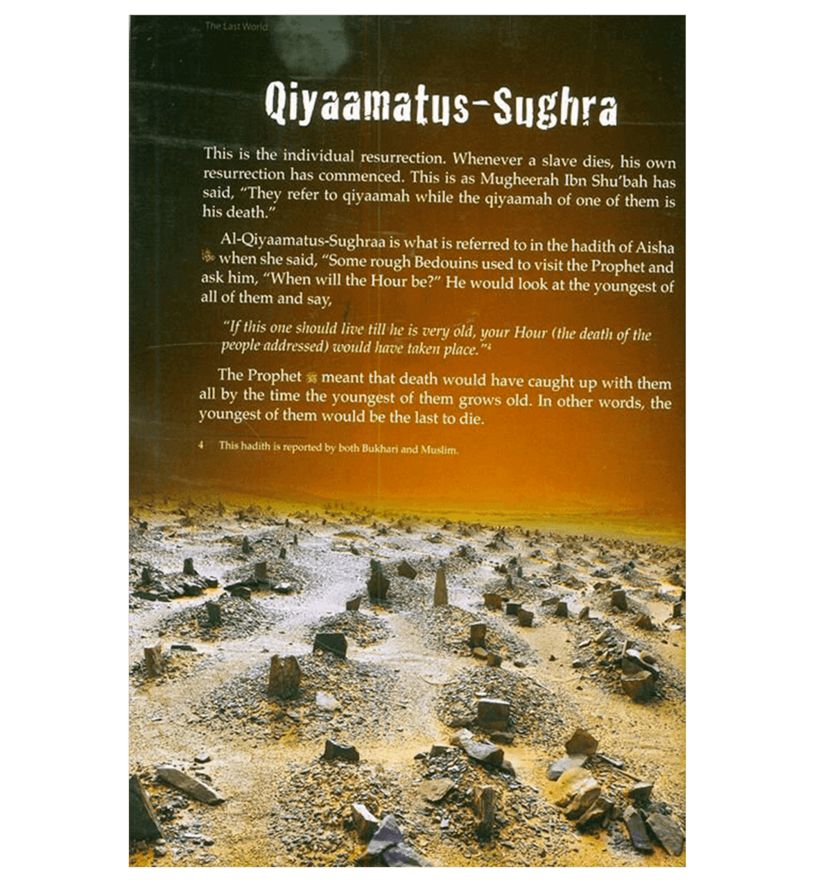 Description of the signs of the hour Barzakh and the hereafter from Quran and Sunnah.
